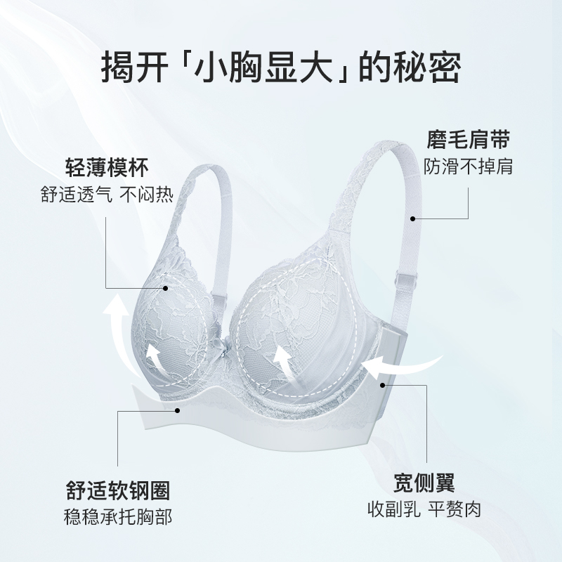 古今蕾丝内衣女透气小胸聚拢性感美背收副乳防下垂大U露背文胸