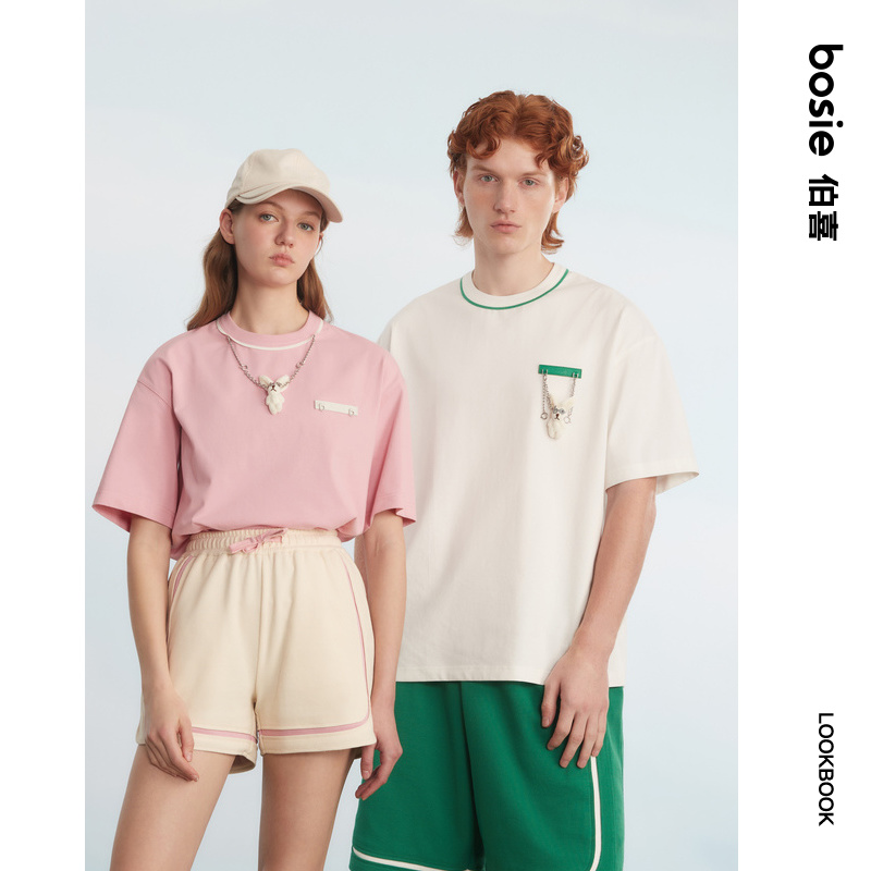 bosie2025夏季新款圆领短袖T恤男情侣可拆卸项链体恤百搭打底衫潮