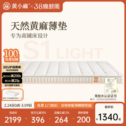 黄小麻乳胶床垫家用卧室0胶水床垫硬垫子精梳黄麻护脊床垫S1Light