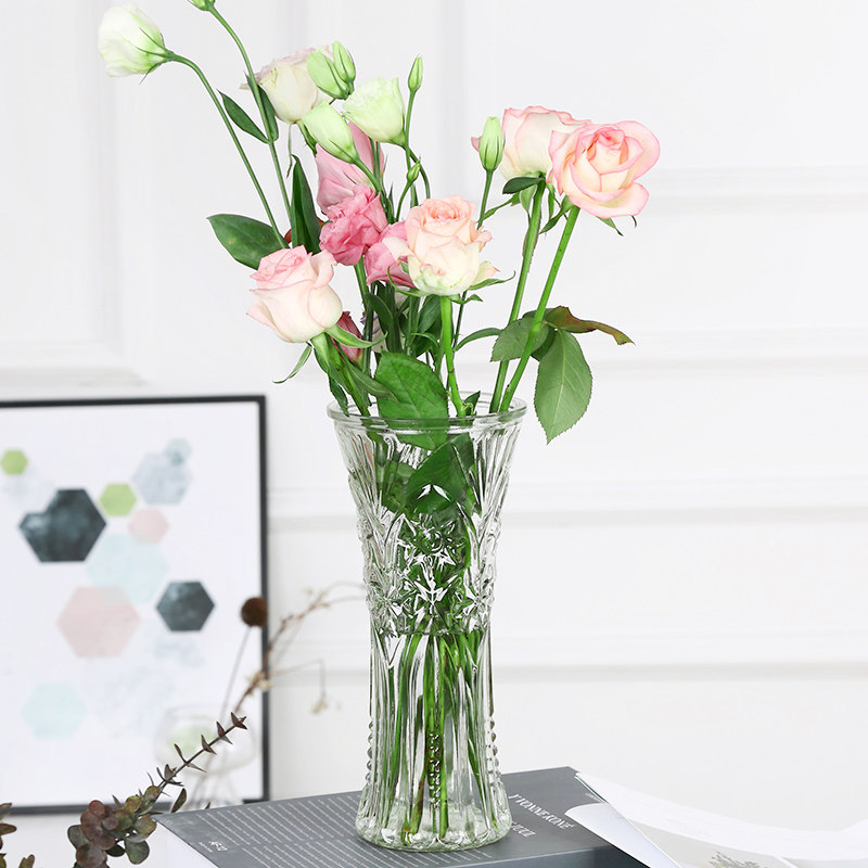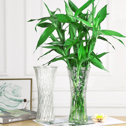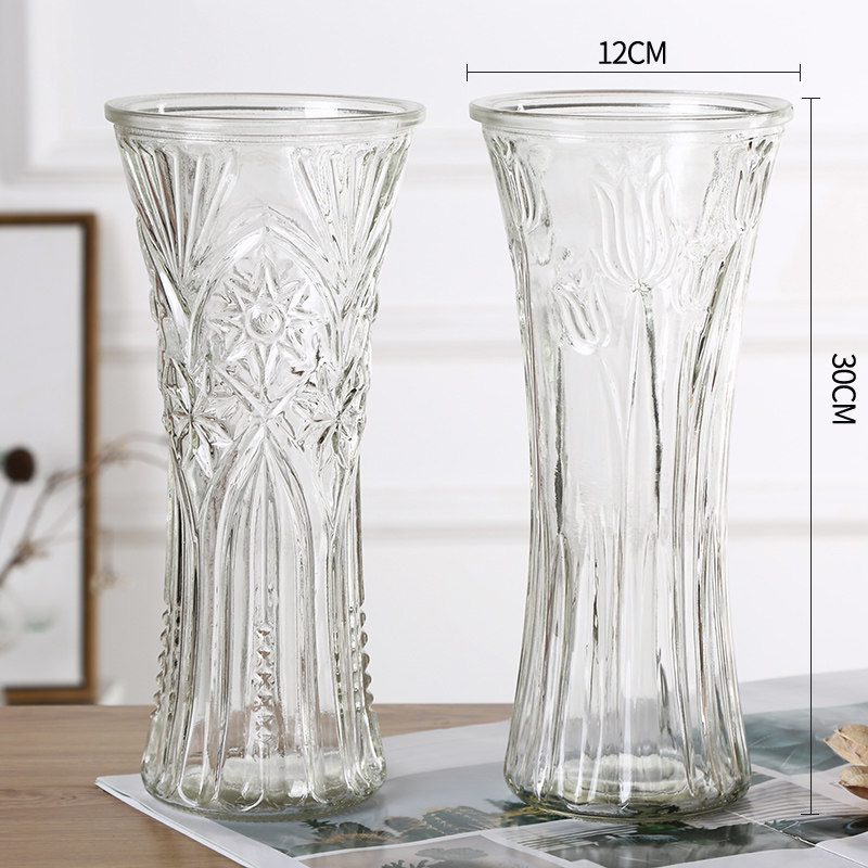 高款圆形玻璃花瓶透明大号水培富贵竹干花百合六角瓶家居摆件客厅