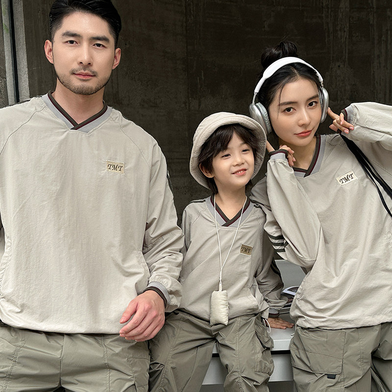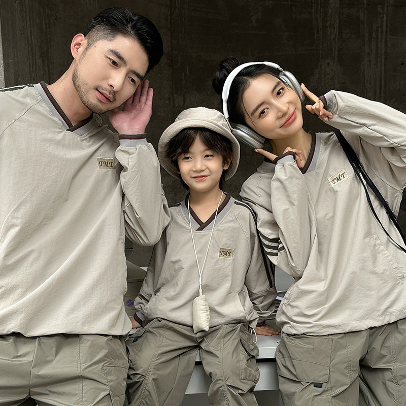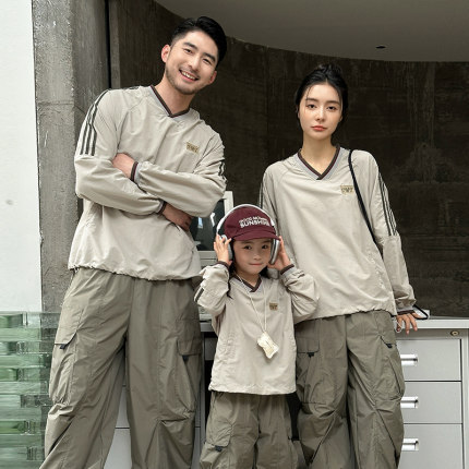美式亲子装春装卫衣工装风一家三口长裤运动户外洋气母子母女装潮
