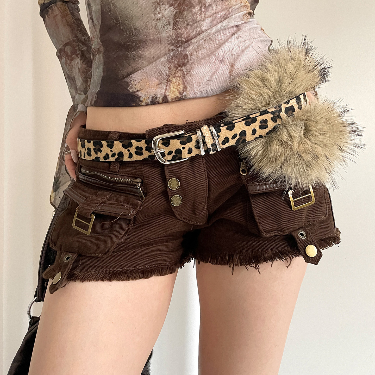 美式辣妹风豹纹毛绒腰带女复古小众y2k千禧风配裙子细款皮带配饰