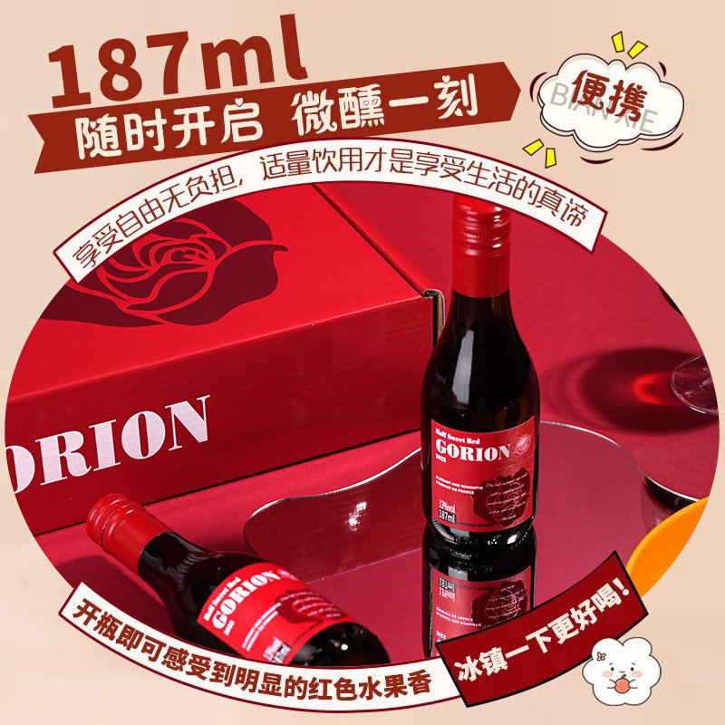 【自营】法国原酒进口半甜红葡萄酒小瓶迷你红酒晚安酒微醺礼盒装