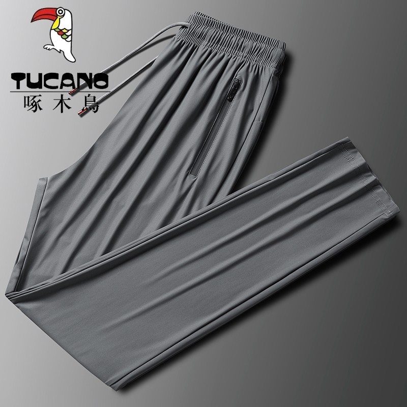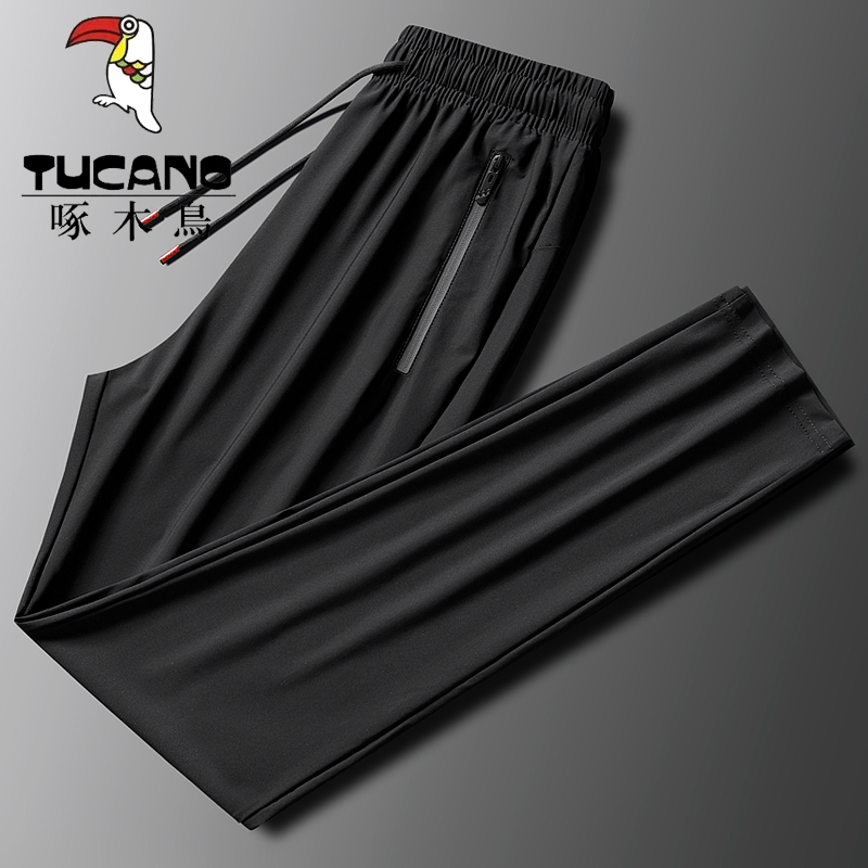 啄木鸟夏季休闲裤男士宽松大码高弹力运动裤青年冰丝透气速干长裤