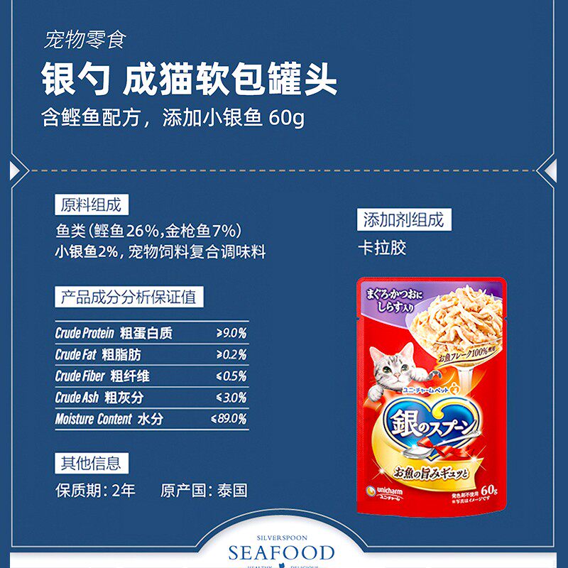 日本进口佳乐滋银勺猫咪零食猫餐包软包金枪鱼营养补水猫咪湿粮包