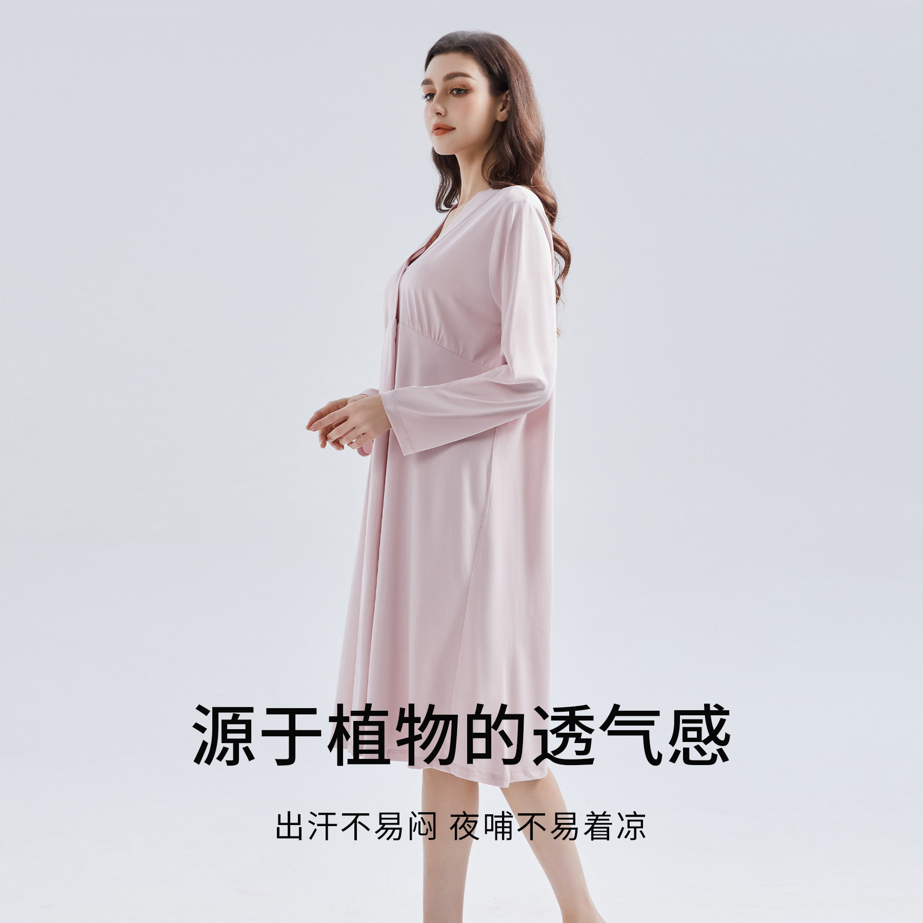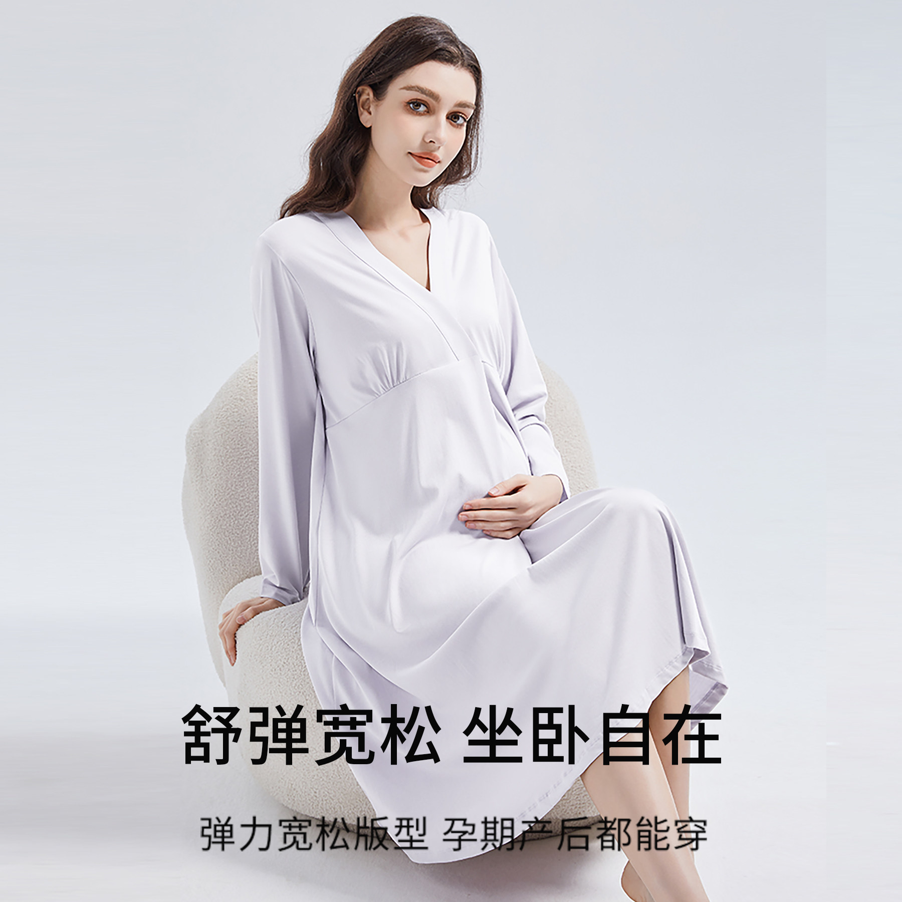 歌美姿孕妇睡裙家居服长袖中长裙产前产后哺乳月子服喂奶莫代尔