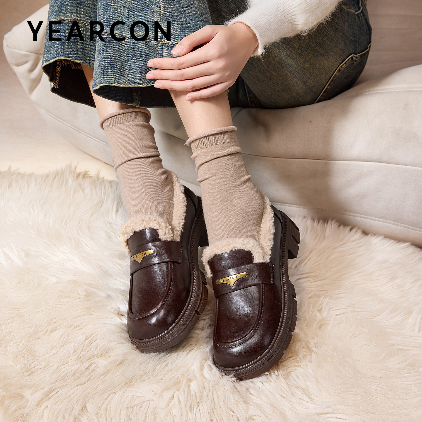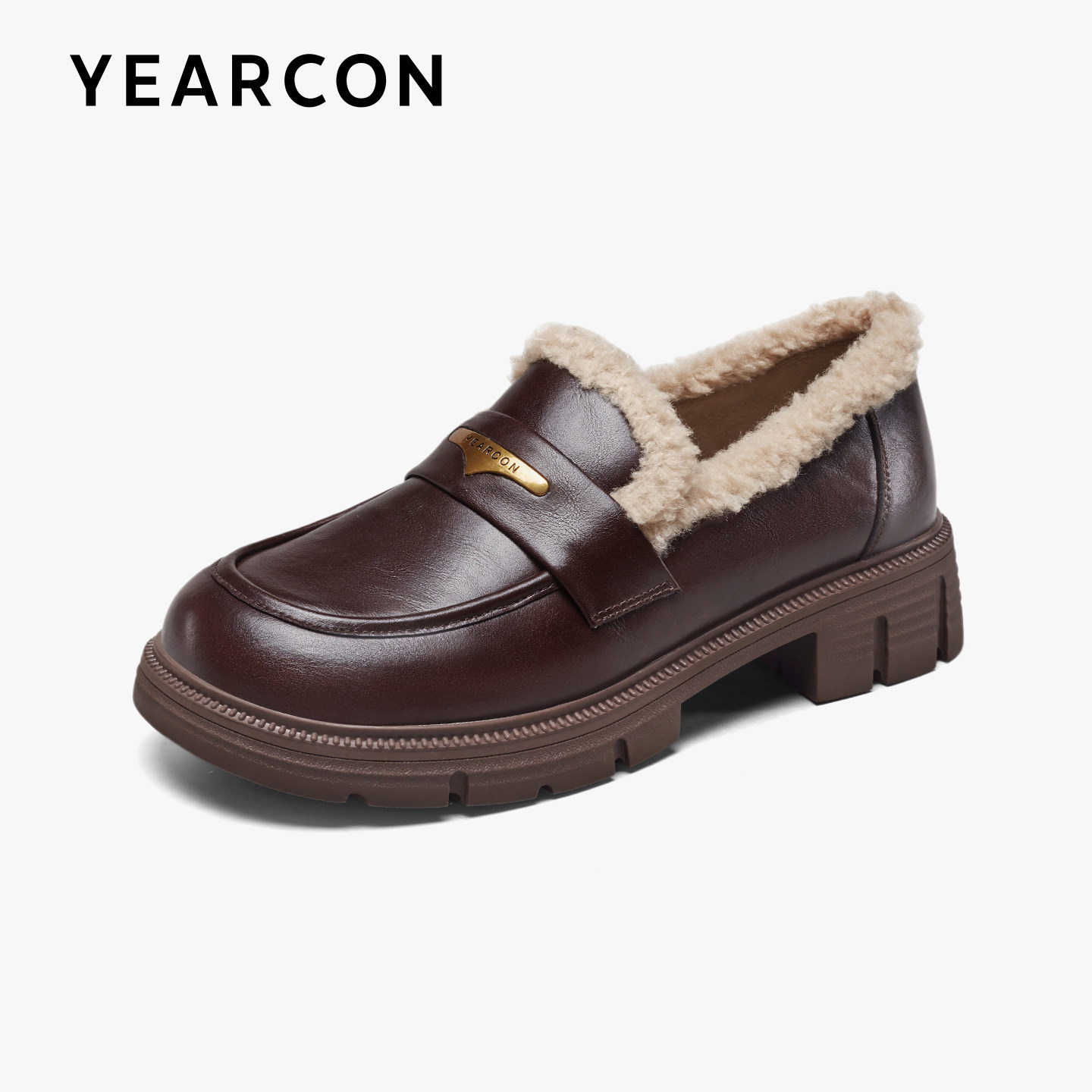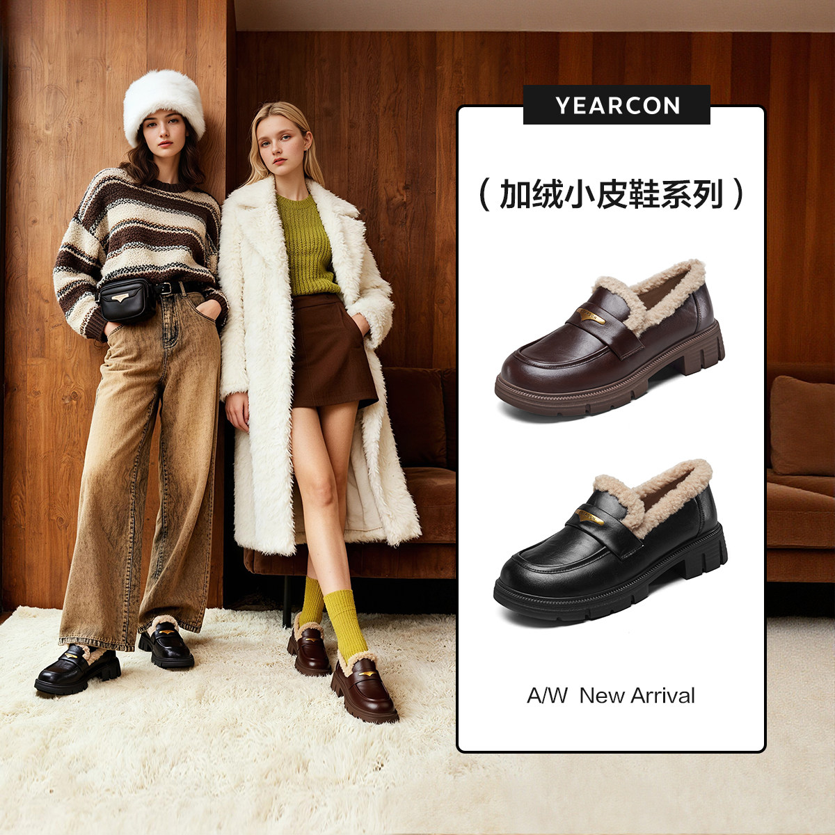意尔康加绒通勤乐福鞋女2025秋冬新款厚底不累脚单鞋英伦风小皮鞋