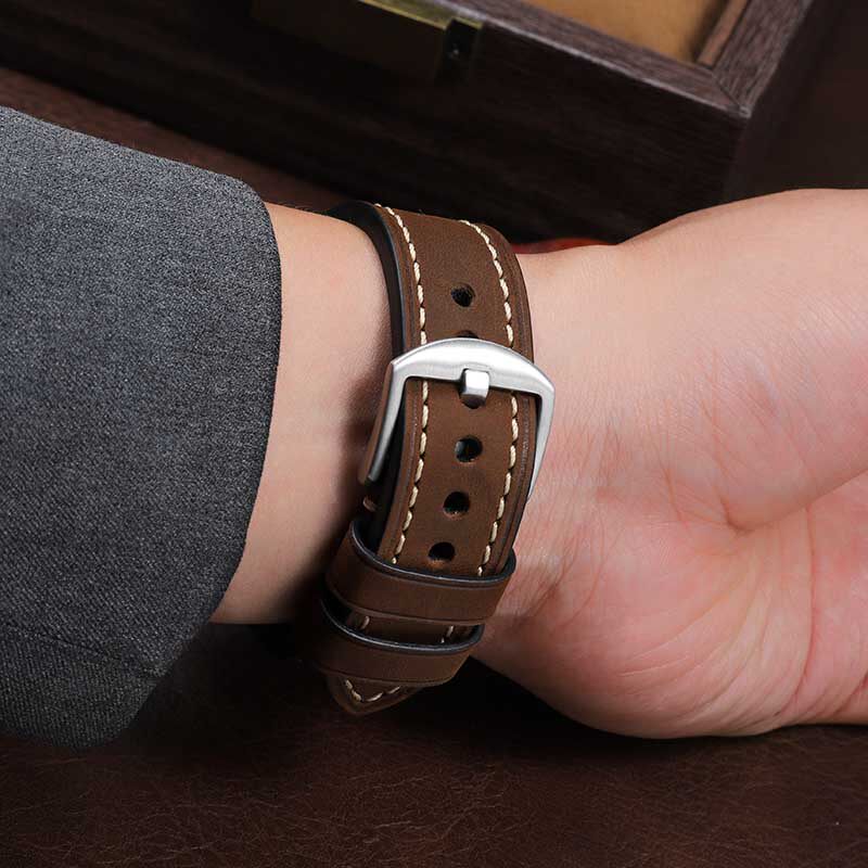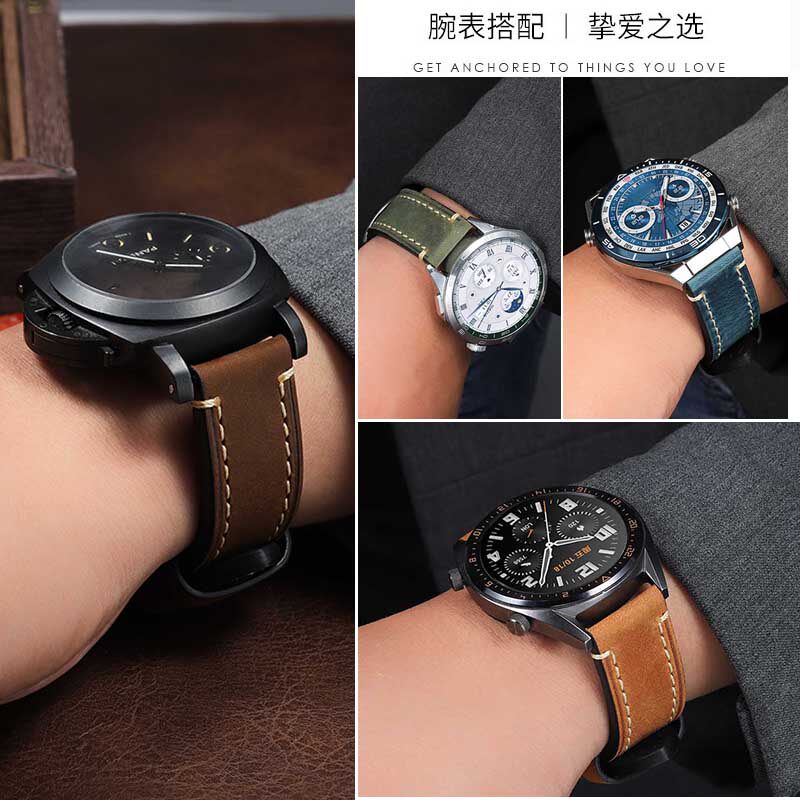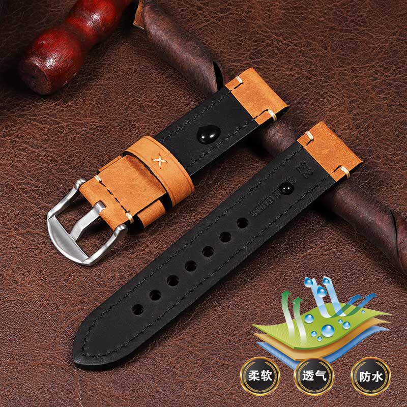 复古真皮手表带 适配沛纳海 美度 天梭 阿玛尼男表表带牛皮带配件
