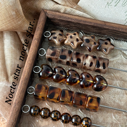 亚克力豹纹爱心方块星星珠子 diy手工串珠手链项链手机链配饰散珠