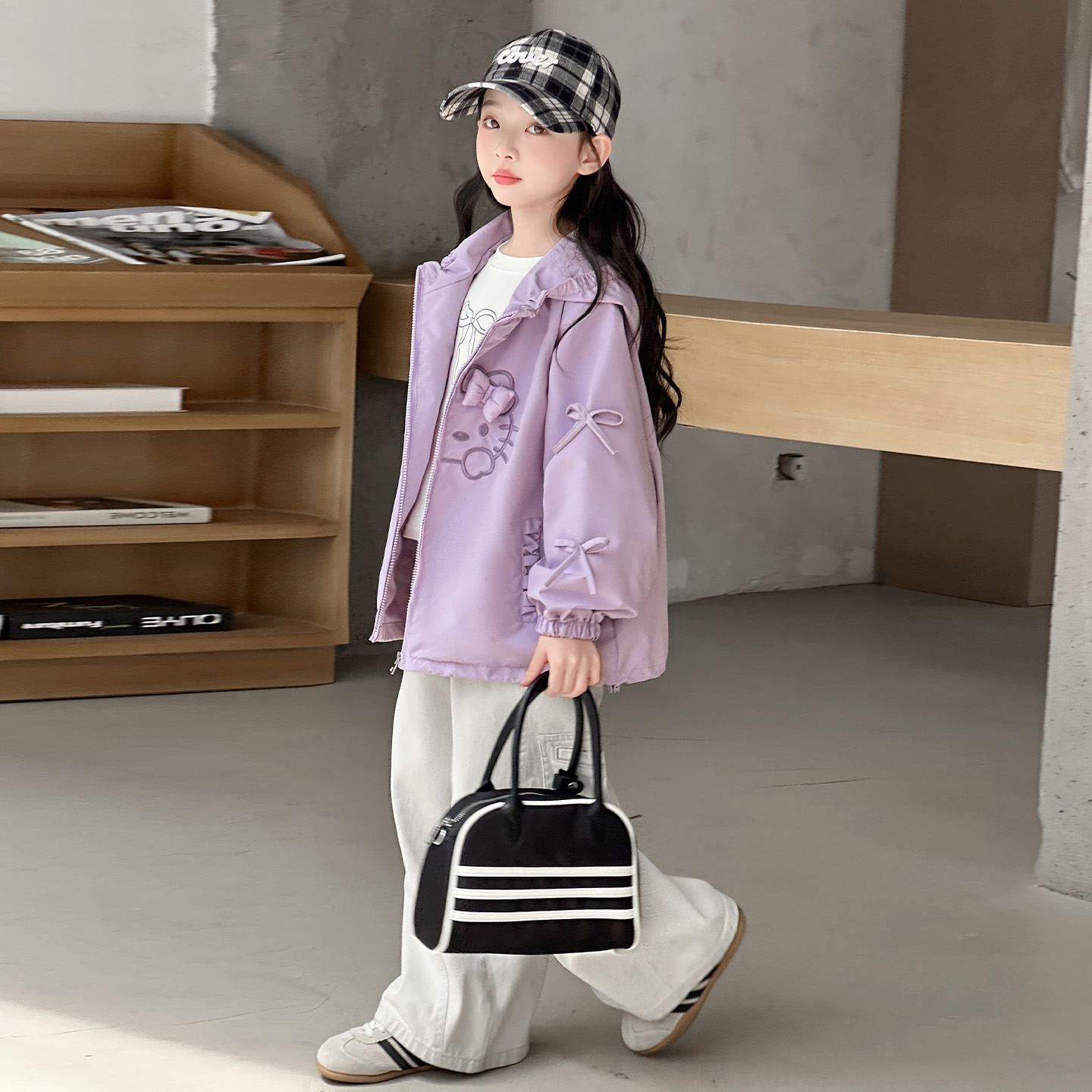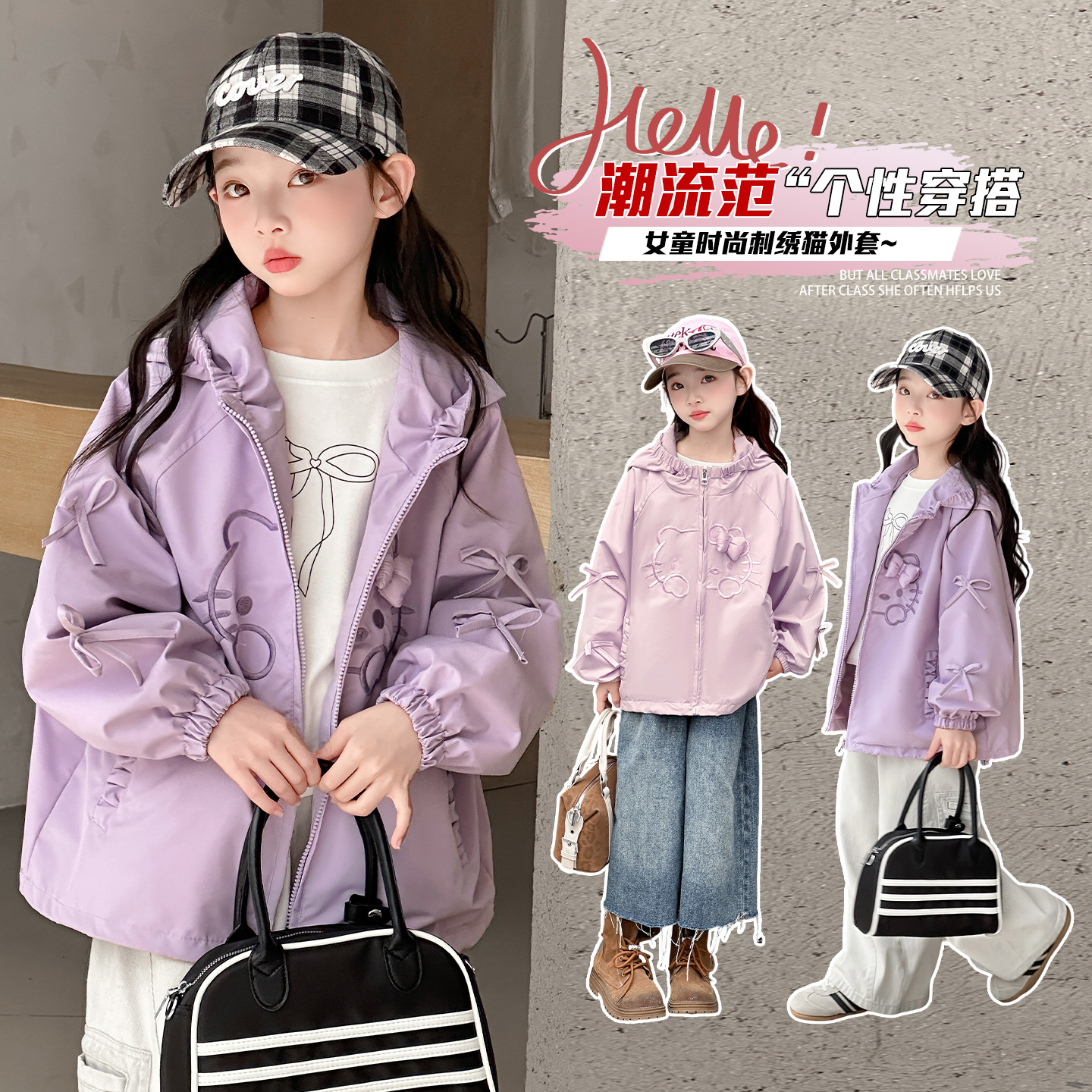 女童秋装连帽外套2025新款小女孩开衫上衣中大童春秋季紫色冲锋衣