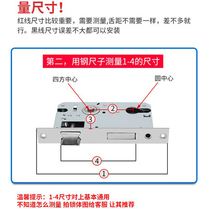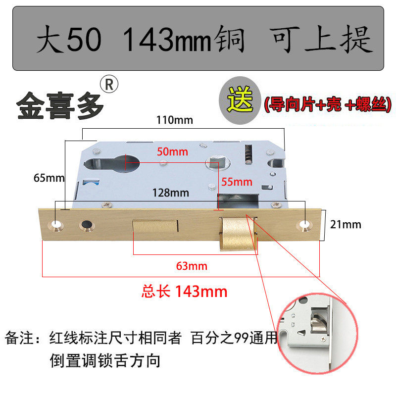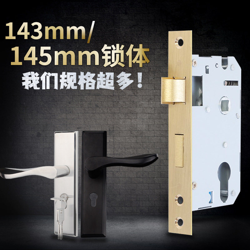室内门锁145mm锁体黑色实木门房门大50通用免打孔不锈钢锁具配件