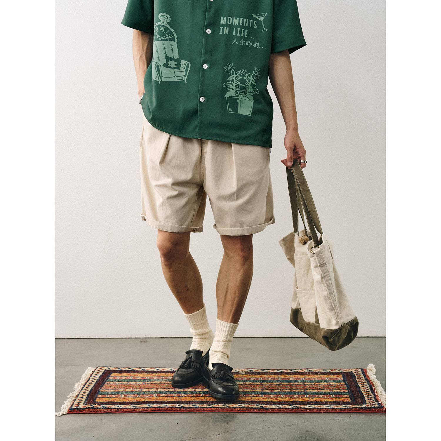 CENLES日系复古水洗斜纹短裤