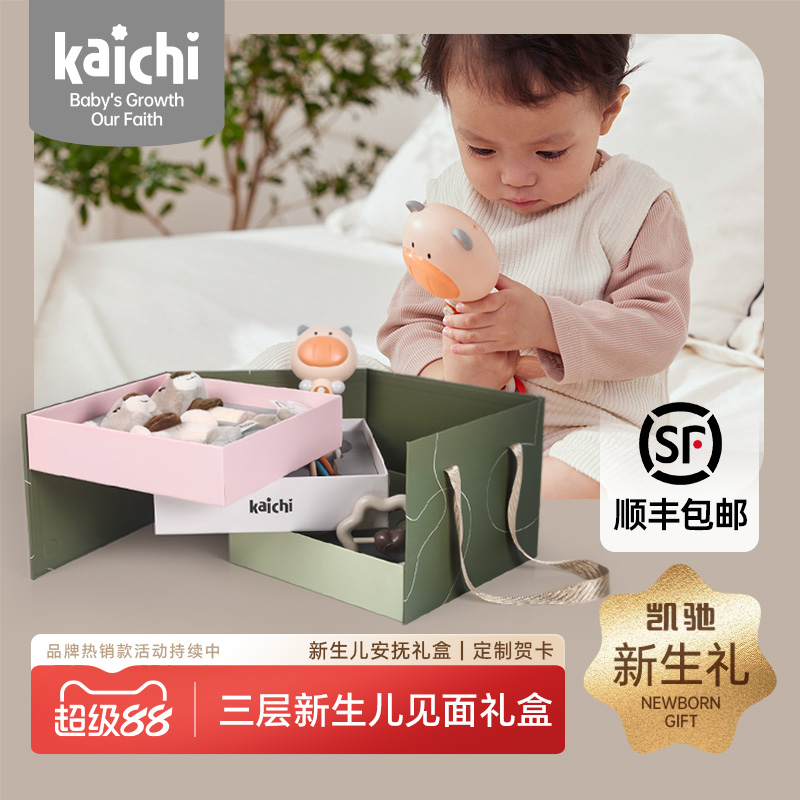 kaichi凯驰婴儿礼盒手摇铃新生宝宝玩具百天满月牙胶可咬01岁礼物