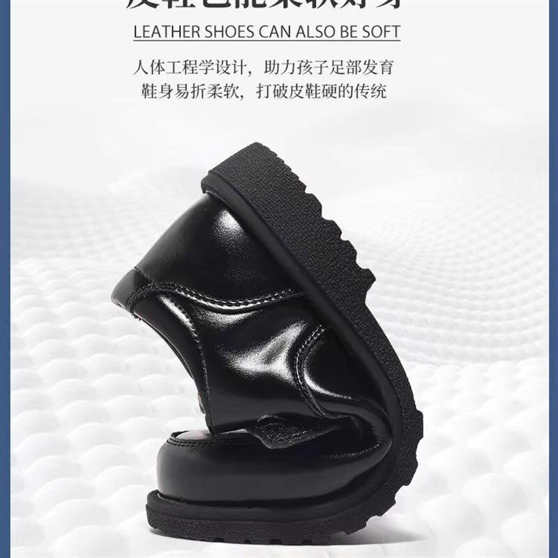 男童皮鞋春秋新款小学生校园礼仪男孩软底儿童黑色英伦风演出童鞋
