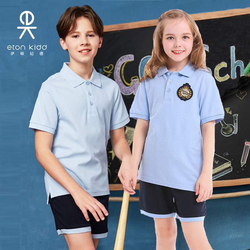 伊顿纪德POLO衫2024夏季校服中小学生短袖polo运动套装男女童T恤