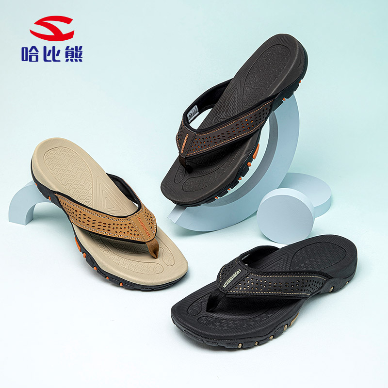 HOBIBEAR男士拖鞋2025年新款夏季透气沙滩鞋休闲露趾人字拖