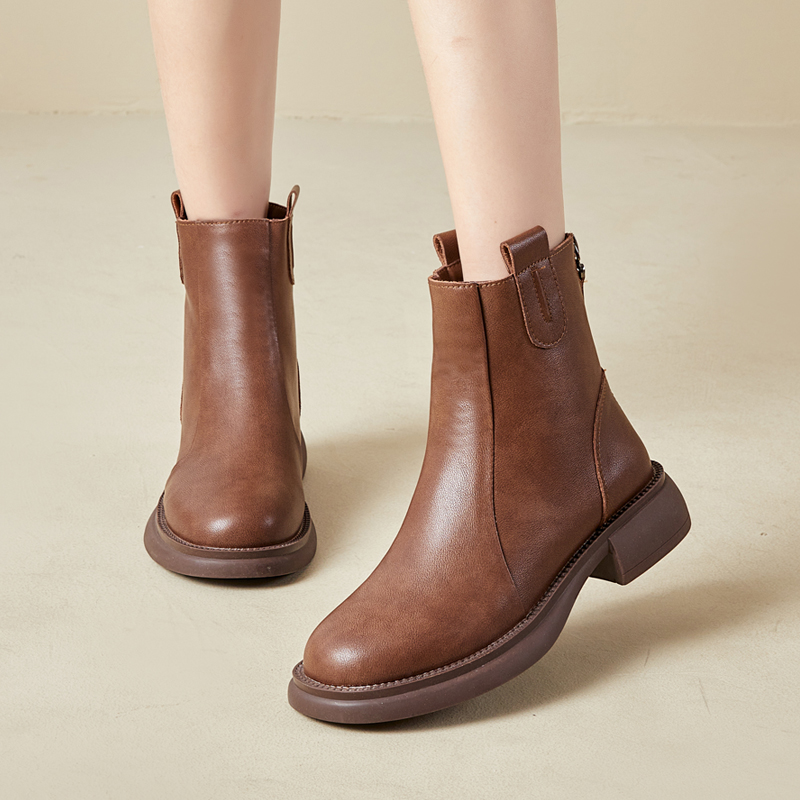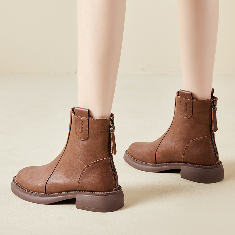 复古圆头马丁靴女2025新款秋冬英伦风加绒短靴平底软底真皮瘦瘦靴