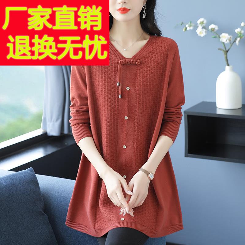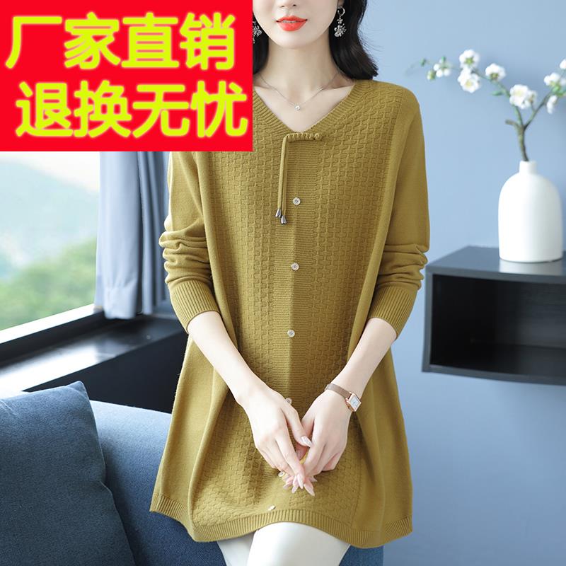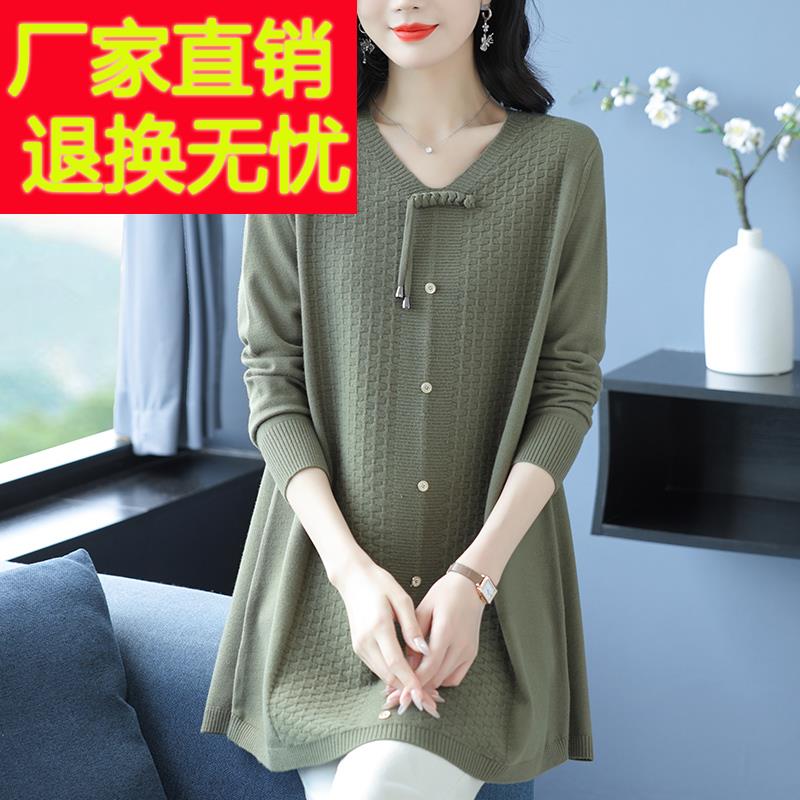 V领毛衣女装中长款加肥加大码200斤针织衫显瘦遮肚妈妈羊毛打底衫