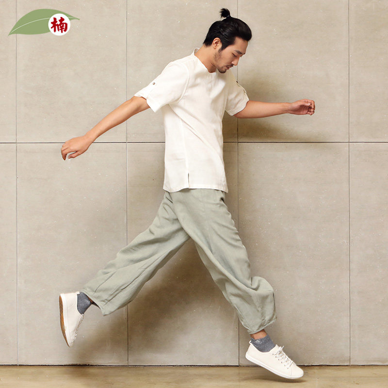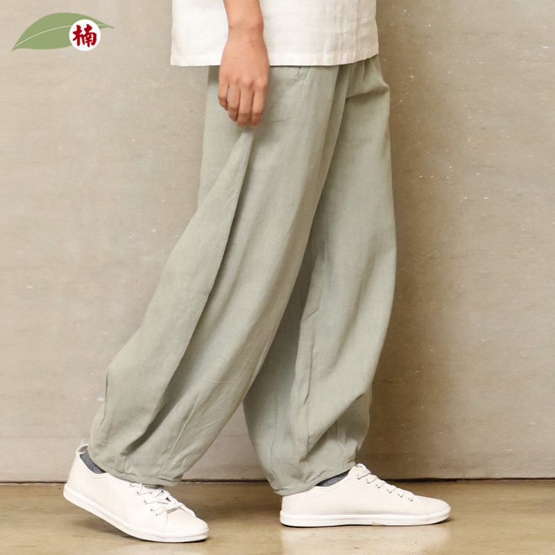 楠中国风100苎麻休闲长裤宽松