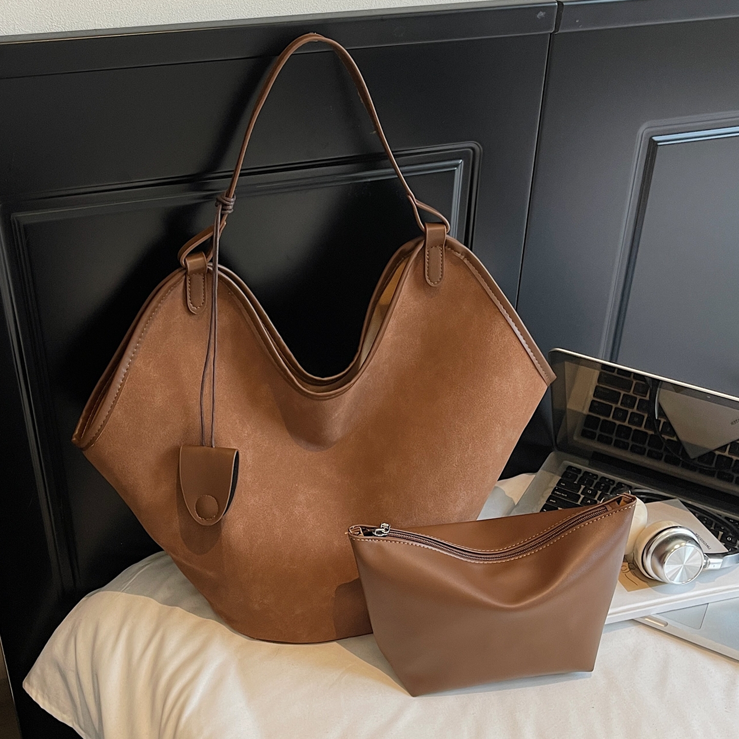 【子母包】小众纯色大容量水桶托特包上班通勤包2025新款潮百搭