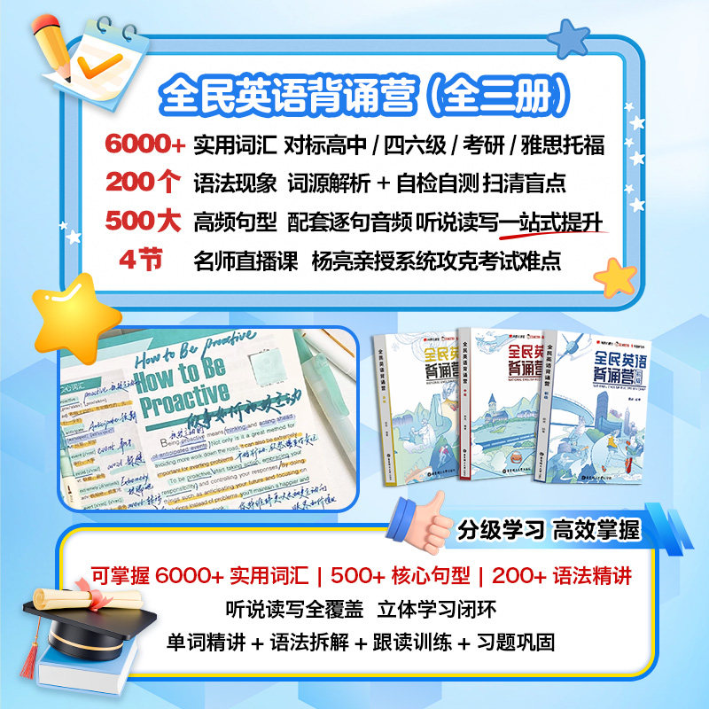 【赠四六级考研直播课】全民英语背诵营 杨亮初级中级高级全套高中高考英语听力写作口语词汇语法提升单词记背神器四六级考研雅思