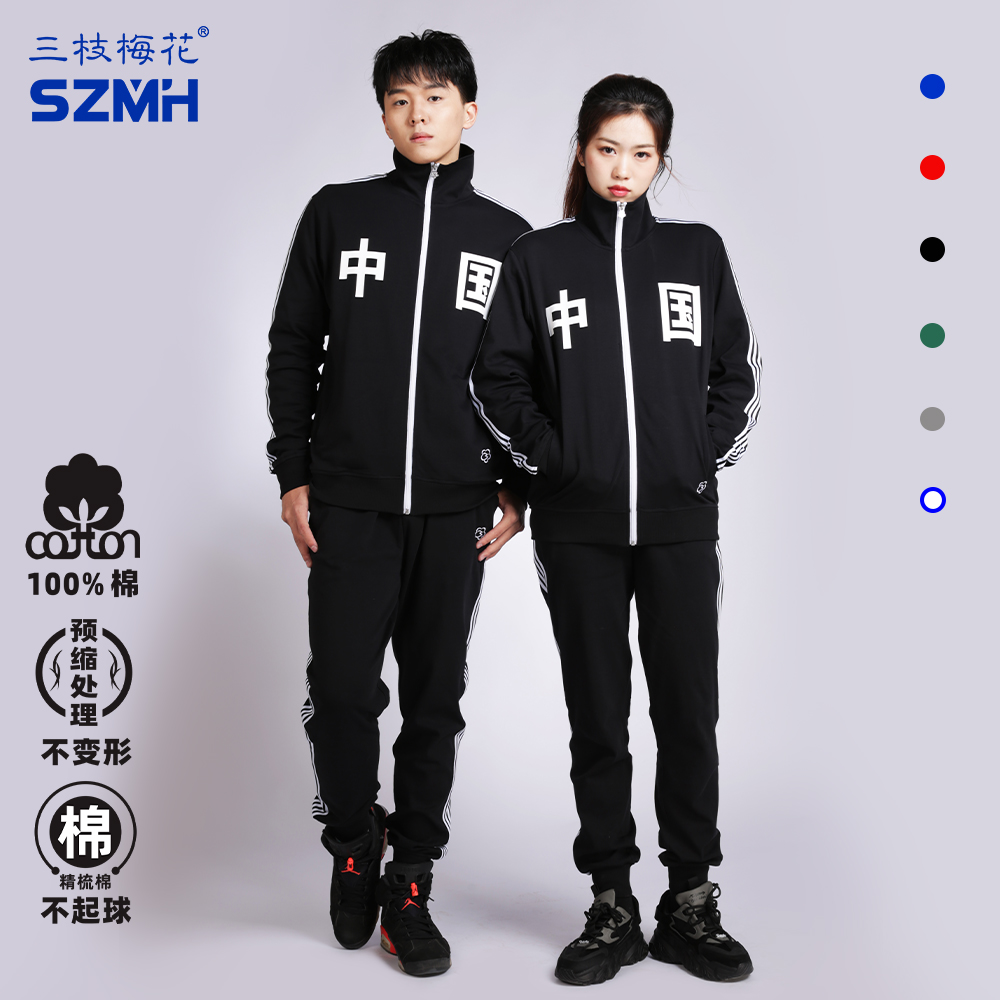 三枝梅花运动服套装男女纯棉跑步中国休闲服收腿裤两件套复古春秋