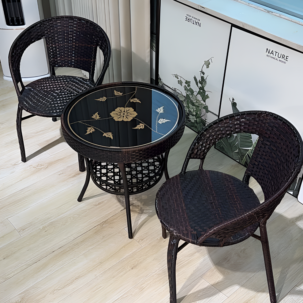 藤椅阳台茶桌小圆桌茶几喝茶桌椅泡茶桌藤编茶台民宿宾馆公寓休闲