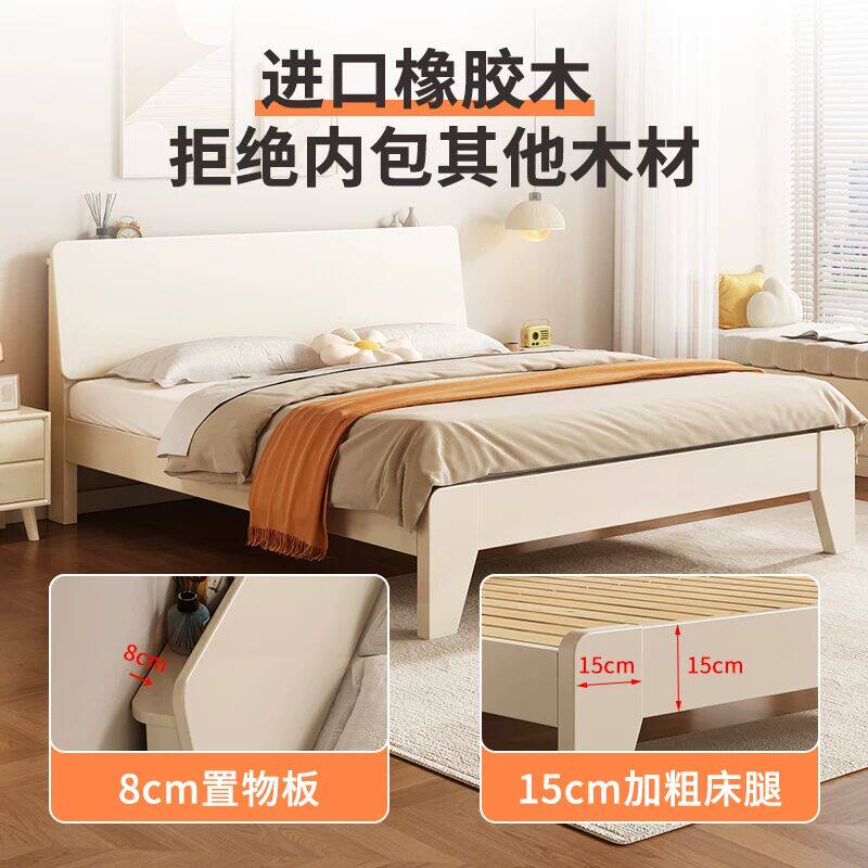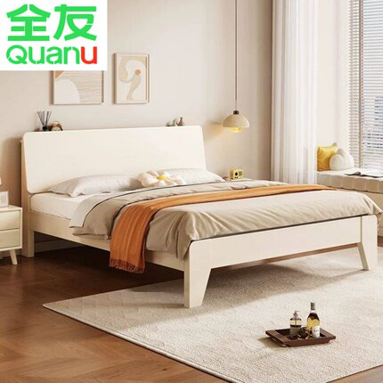 全友家居官网全实木床简约现代白色主卧1.8米双人床大床北欧1.5m