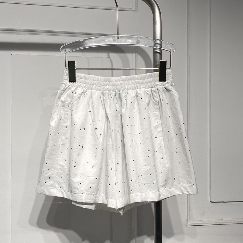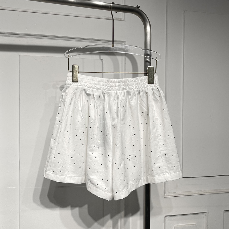 休闲风高腰重工亮钻A版短裤女夏新款宽松显瘦时尚百搭阔腿裤
