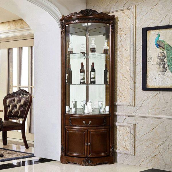 三角酒柜 墙角柜 网红碧桂园欧式客厅转角玻璃门胡桃色实木拐角柜