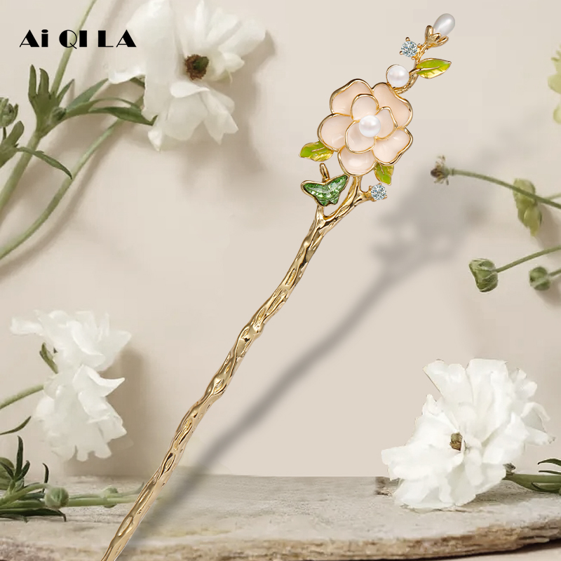 AIQILA山茶花发簪法式优雅簪子