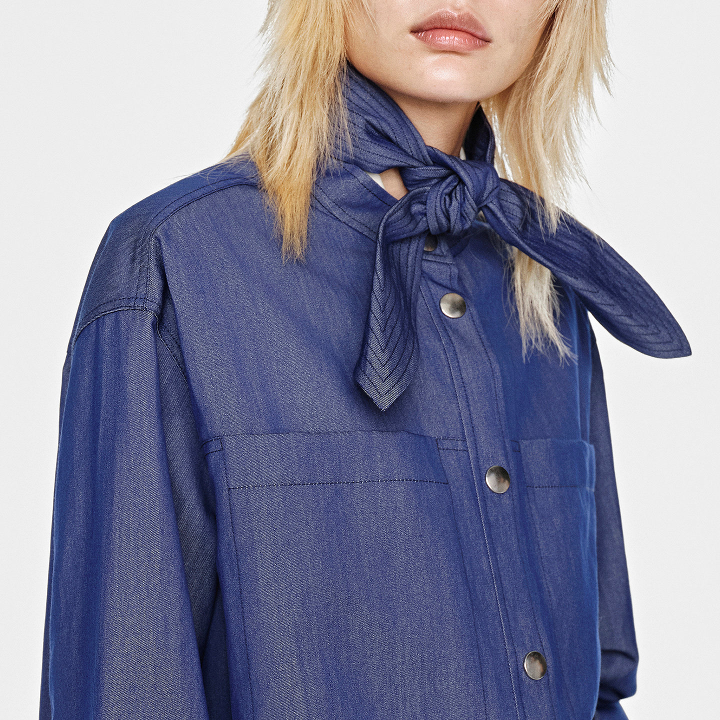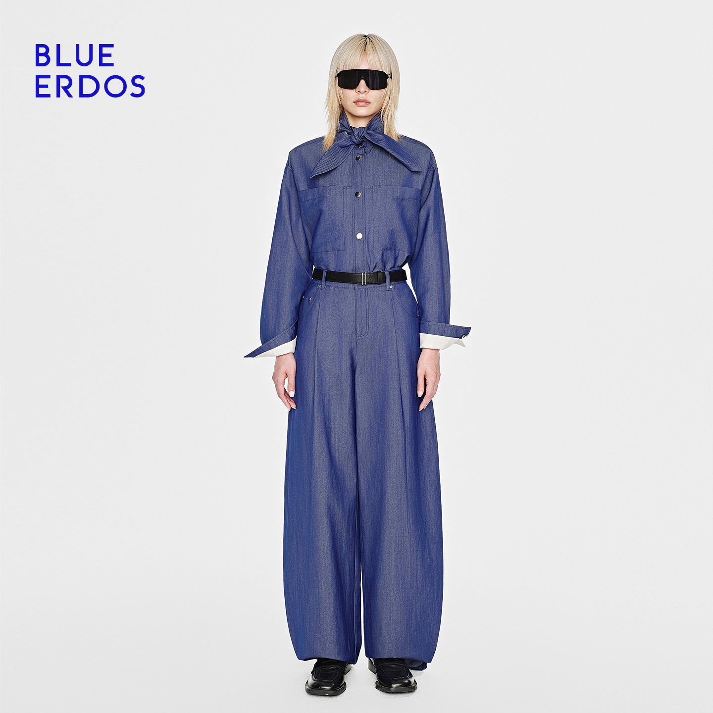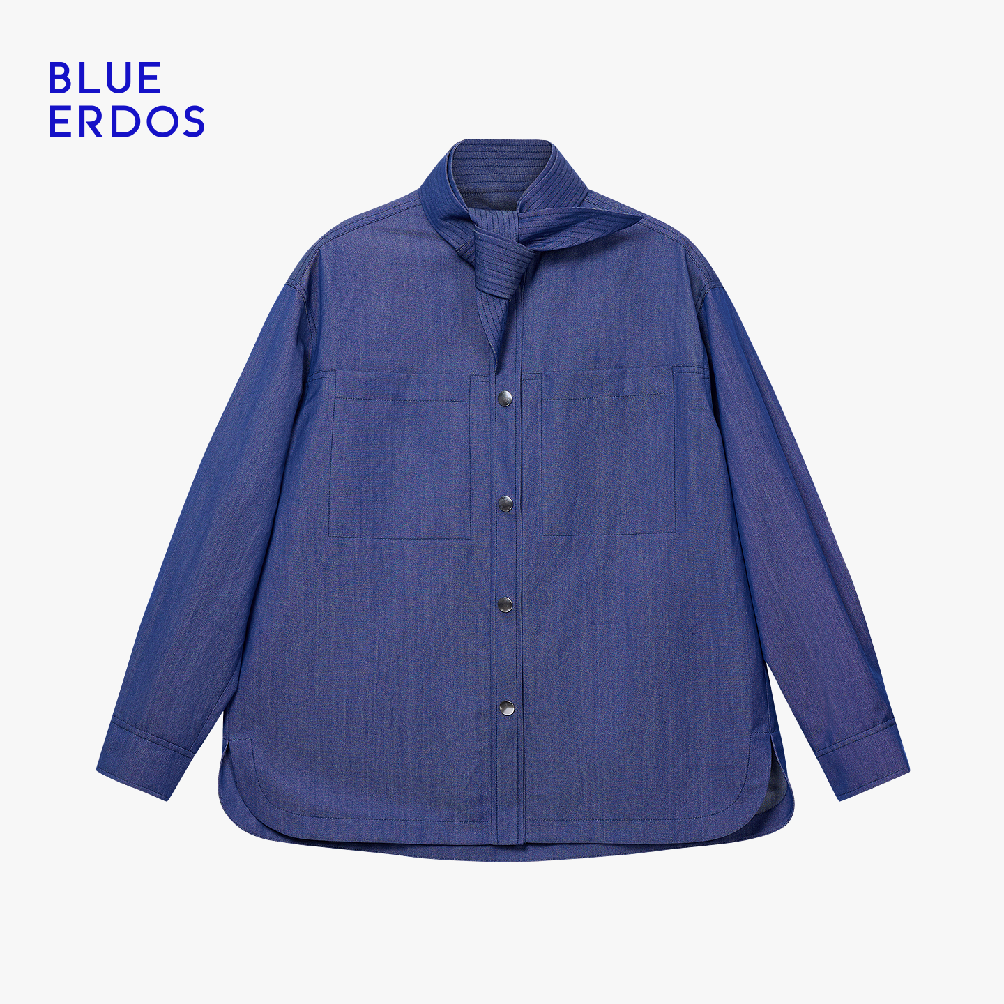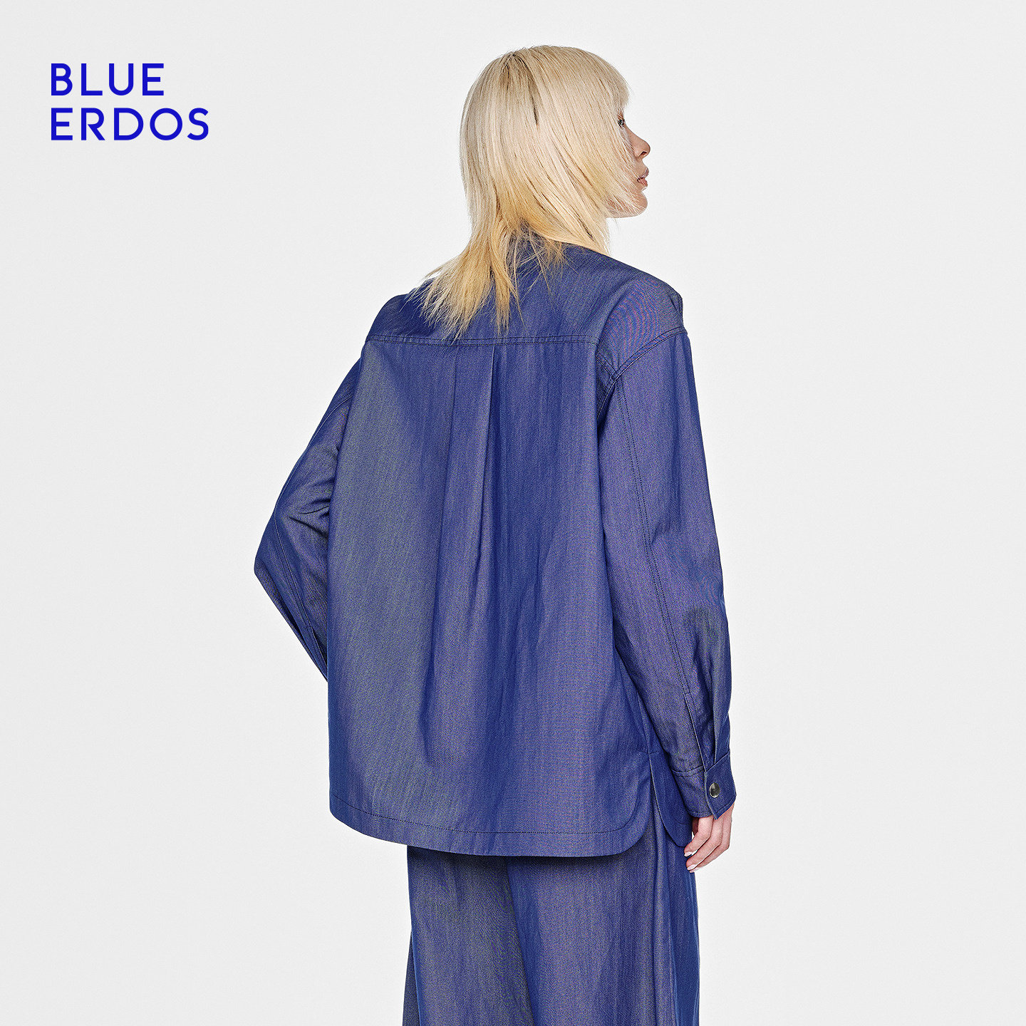 BLUE ERDOS26早春新品质感通勤绵羊毛混纺复古牛仔蓝翻领衬衫女