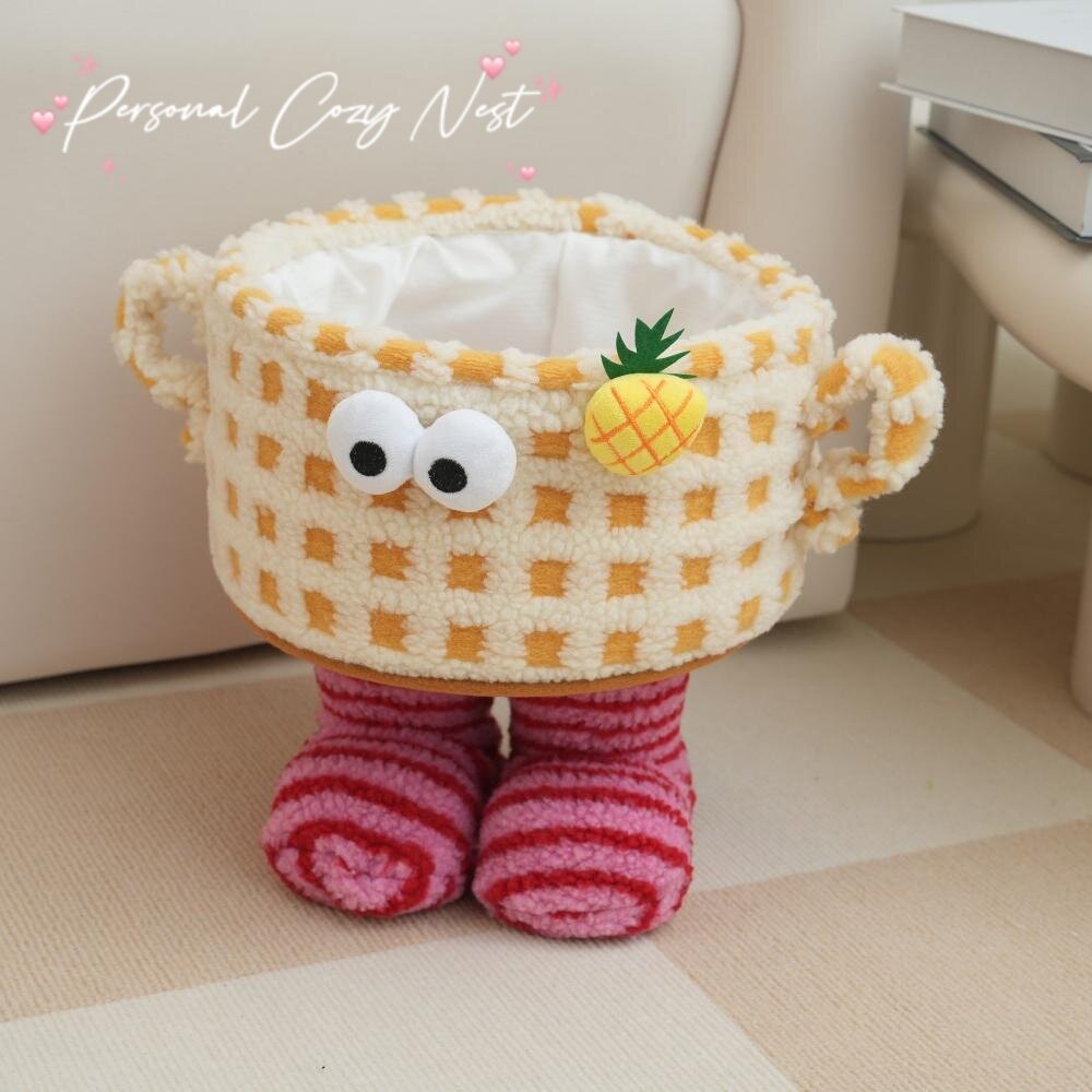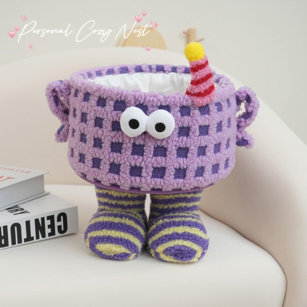 玩偶礼物储物卡通编织客厅书房桌面茶几收纳整理筐箱篮带脚小怪兽
