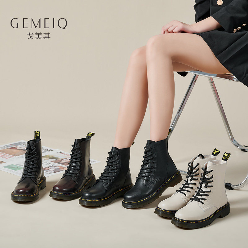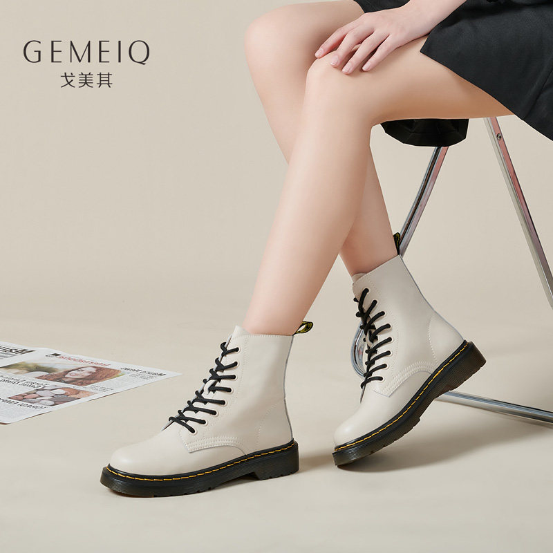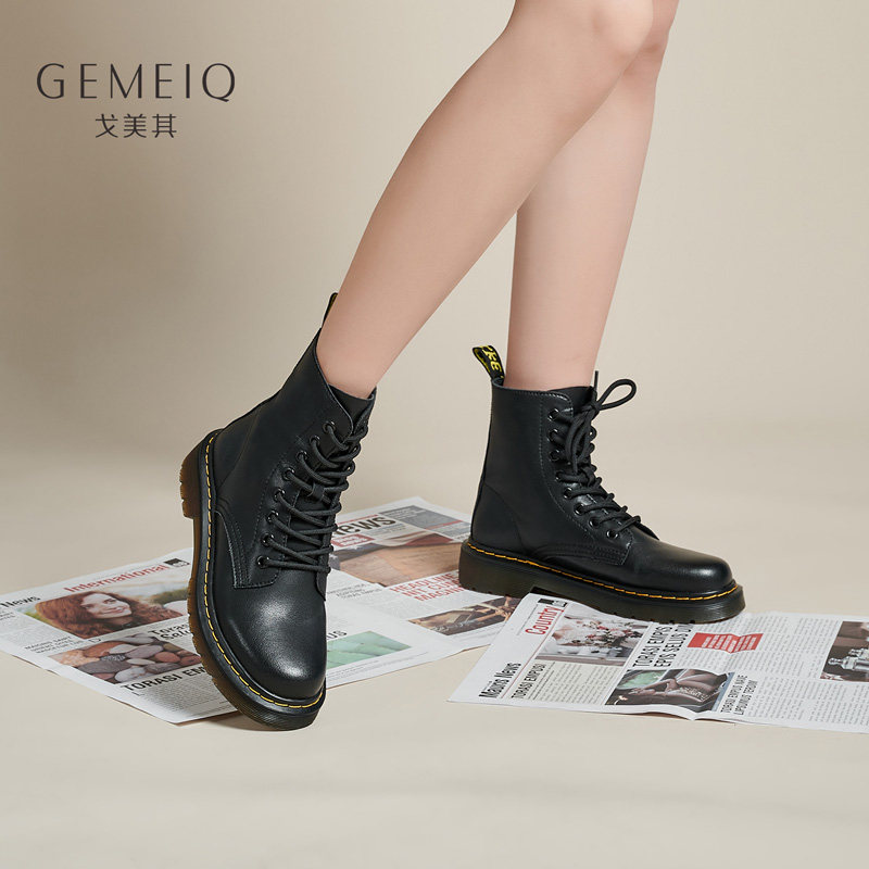 戈美其真皮8孔短筒马丁靴女款舒适年春季新款英伦风平跟厚底单靴