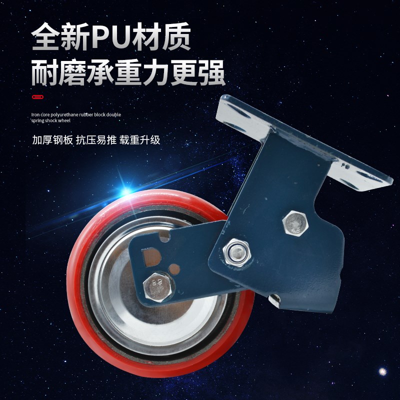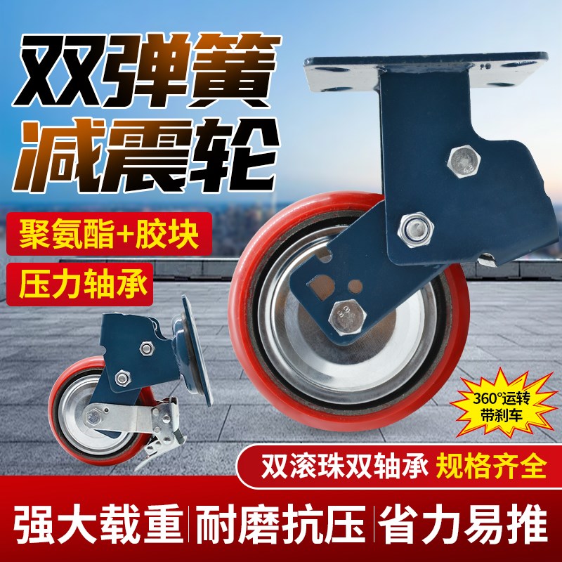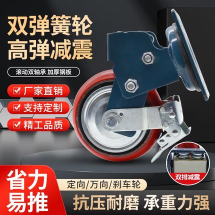 重型聚氨酯多寸双弹簧胶块橡胶减震脚轮万向刹车工位器具避震周转