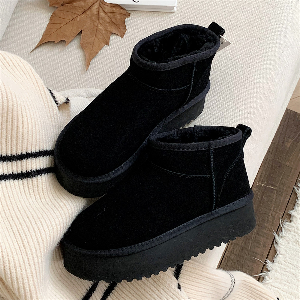 细细条 真牛皮羊毛雪地靴增高厚底女士冬季时尚休闲外穿棉鞋短靴