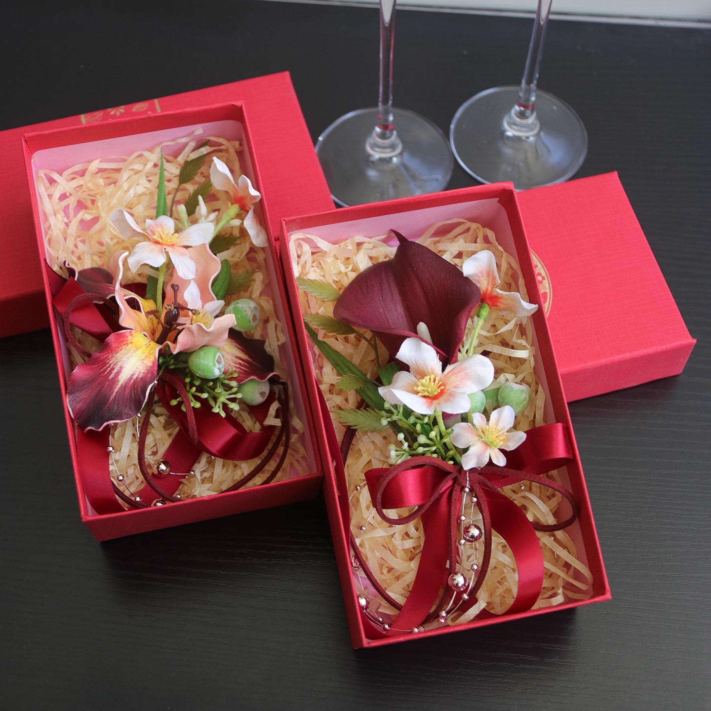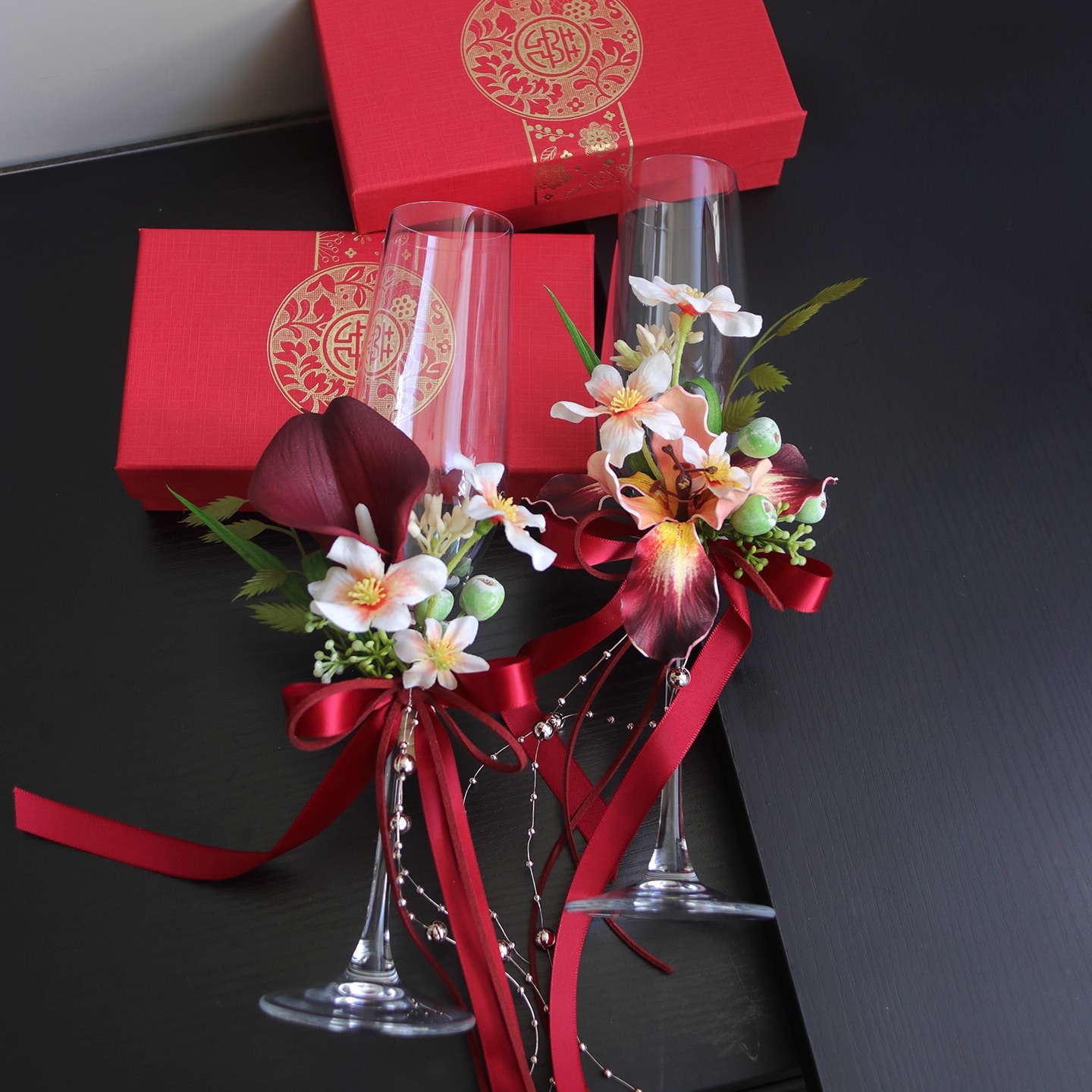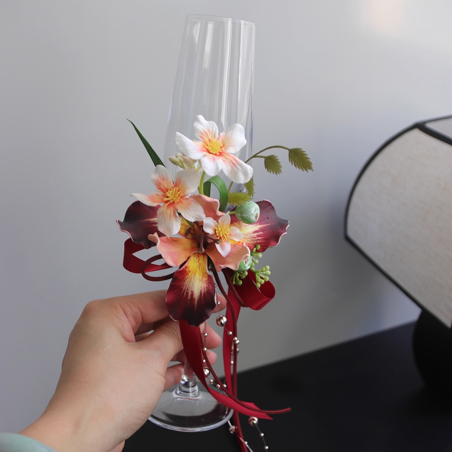 敬酒杯装饰仿真花 氛围感好物结婚摄影活动庆典仪式摆件胸花 红
