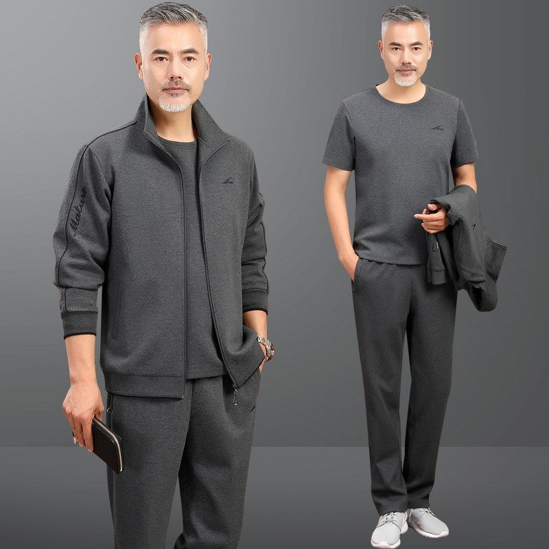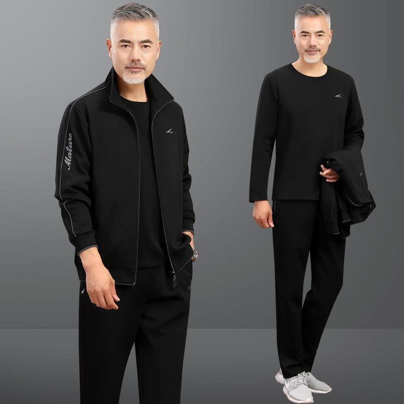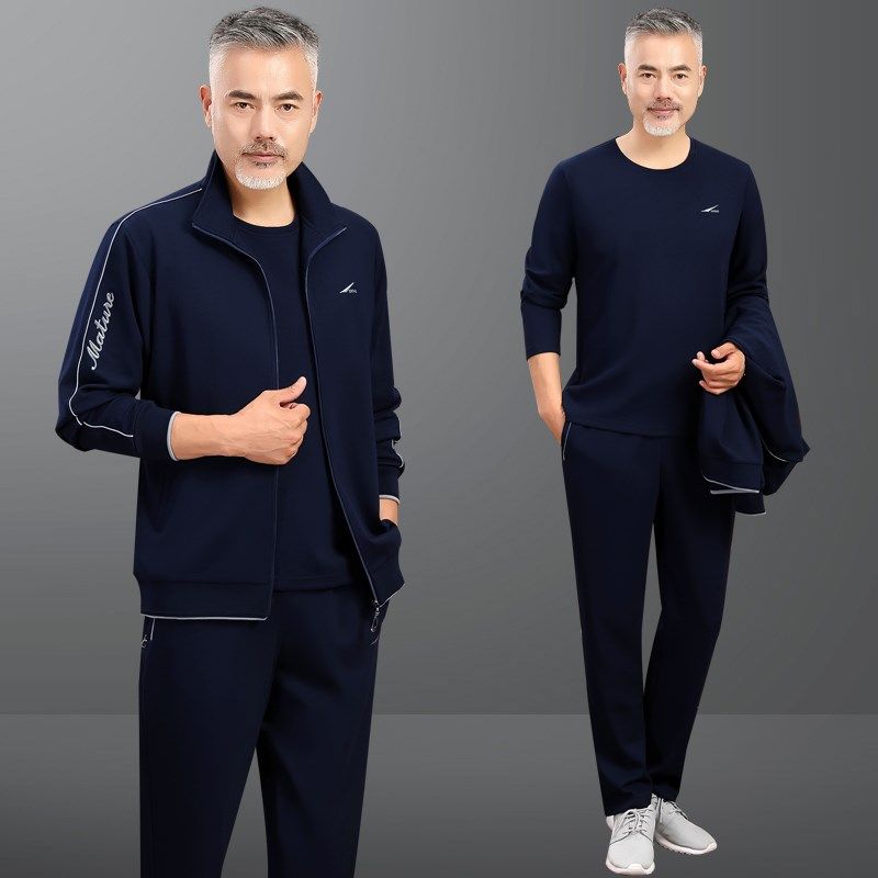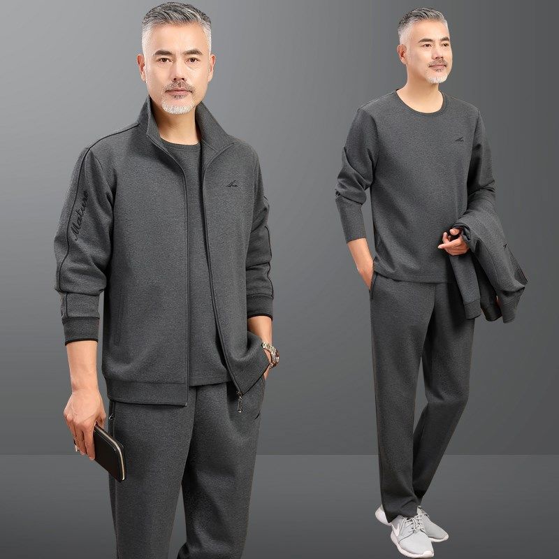 高档中老年运动套装男春秋冬季中年人爸爸装休闲运动服男士三件套