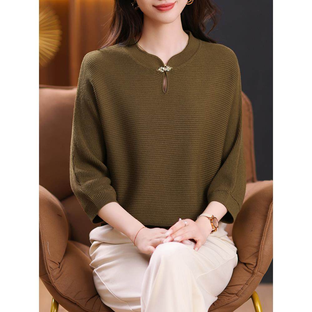 中老年女装喜婆婆婚宴装七分袖红色上衣妈妈春装2025年新款针织衫