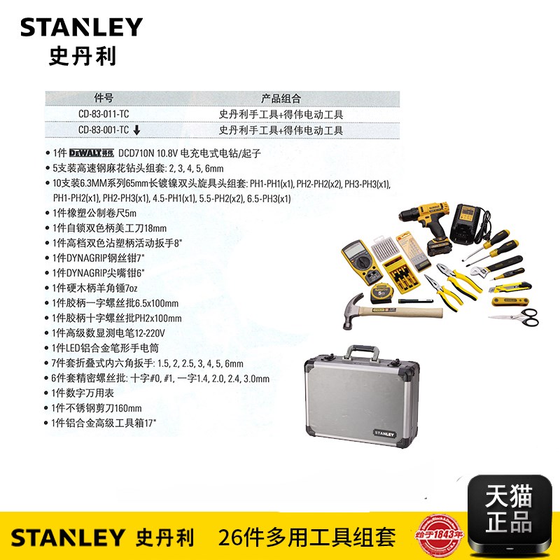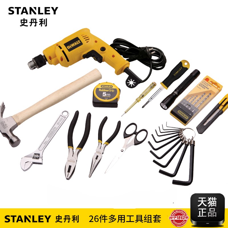 史丹利26件多功能工具套装家用电工木工安装维修带电钻CS-82-011