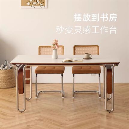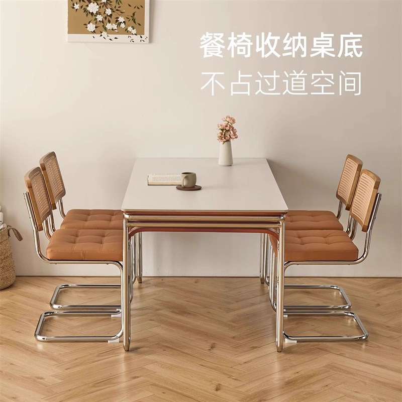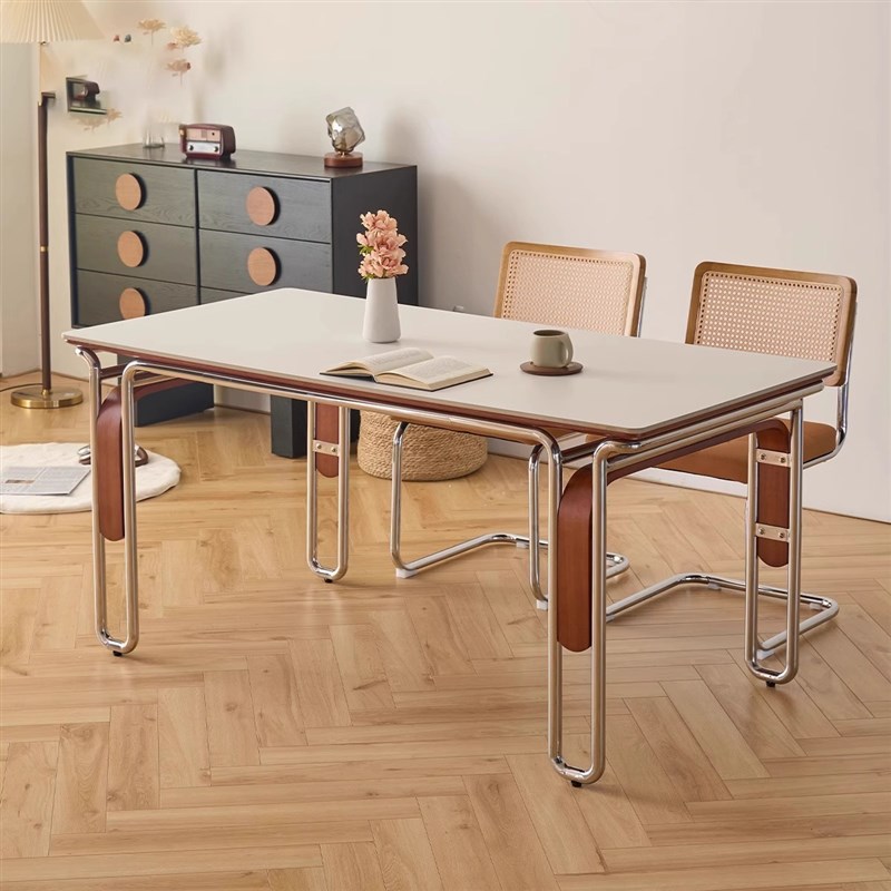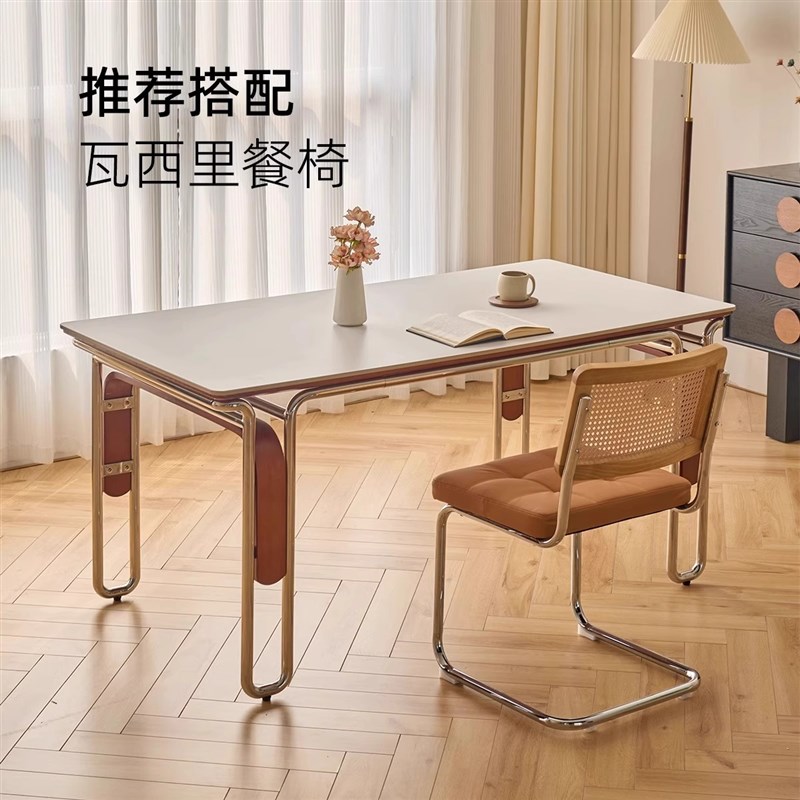 复古岩板实木餐桌家用小户型包豪斯高端长方形中古风家具饭桌椅子