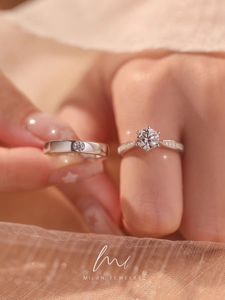 纯银情侣一对戒指男女款小众设计钻戒结婚仿真订婚求婚送老婆礼物