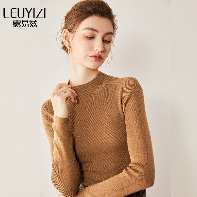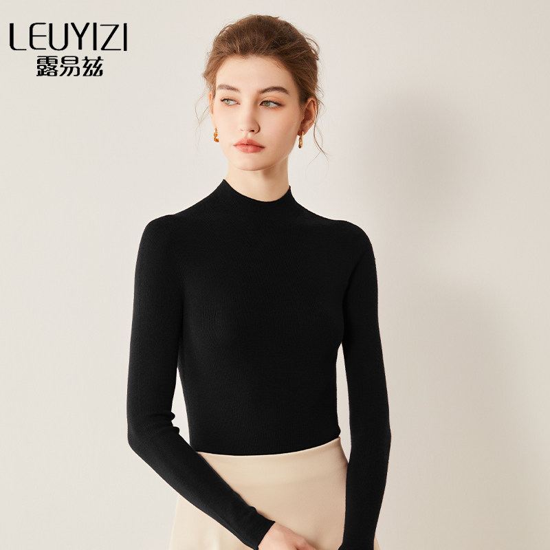 半高领针织打底衫女2024新款无缝一体可机洗羊毛套头女士针织衫