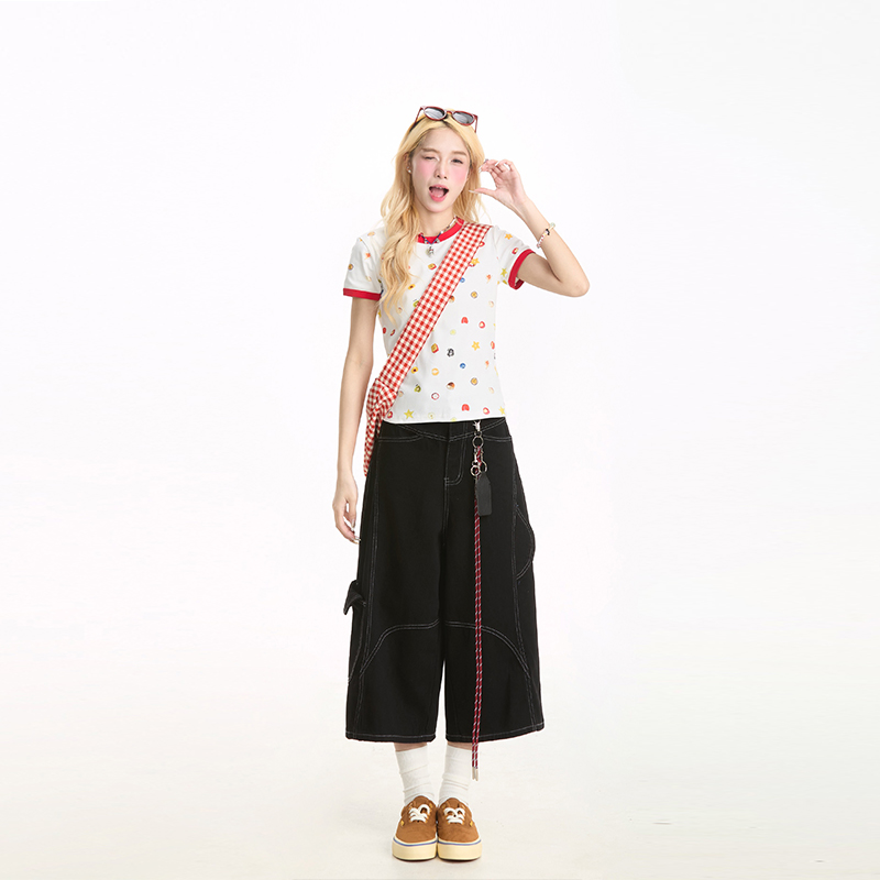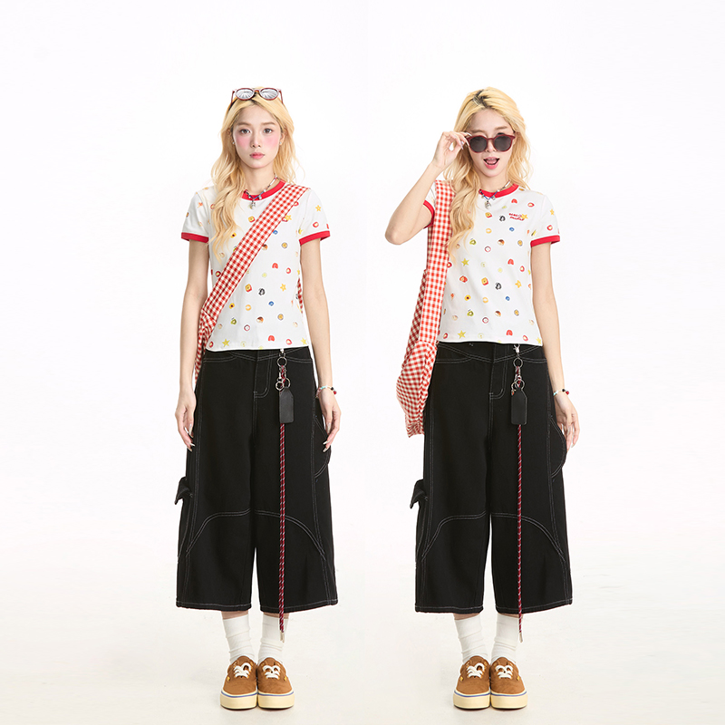 NERESUM夏季新款趣味印花短袖T恤女修身少女感正肩显瘦休闲上衣