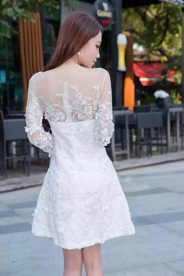 法式小众潮牌网纱透视性感名媛A字裙蕾丝连衣裙生日派对小礼服