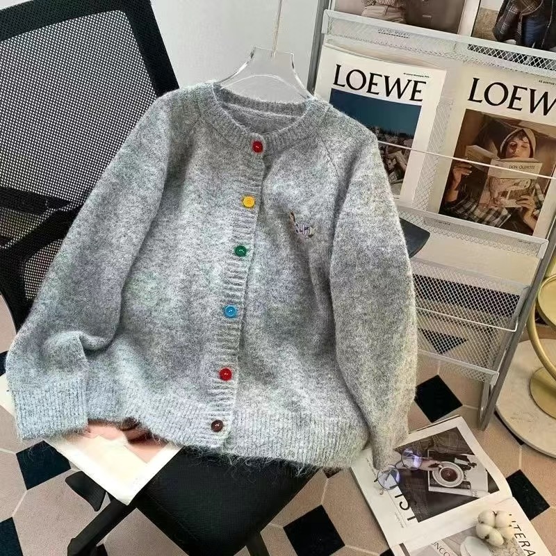 多巴胺扣子毛衣开衫女小狗刺绣软糯外套甜美复古百搭学院风厚上衣