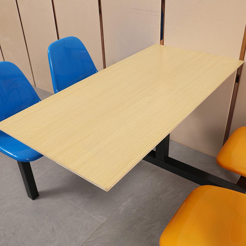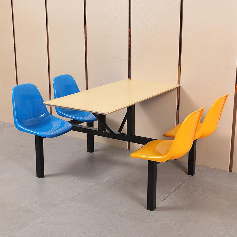 连体桌椅快餐店组合现代带靠背椅学校食堂四座餐桌时尚简约