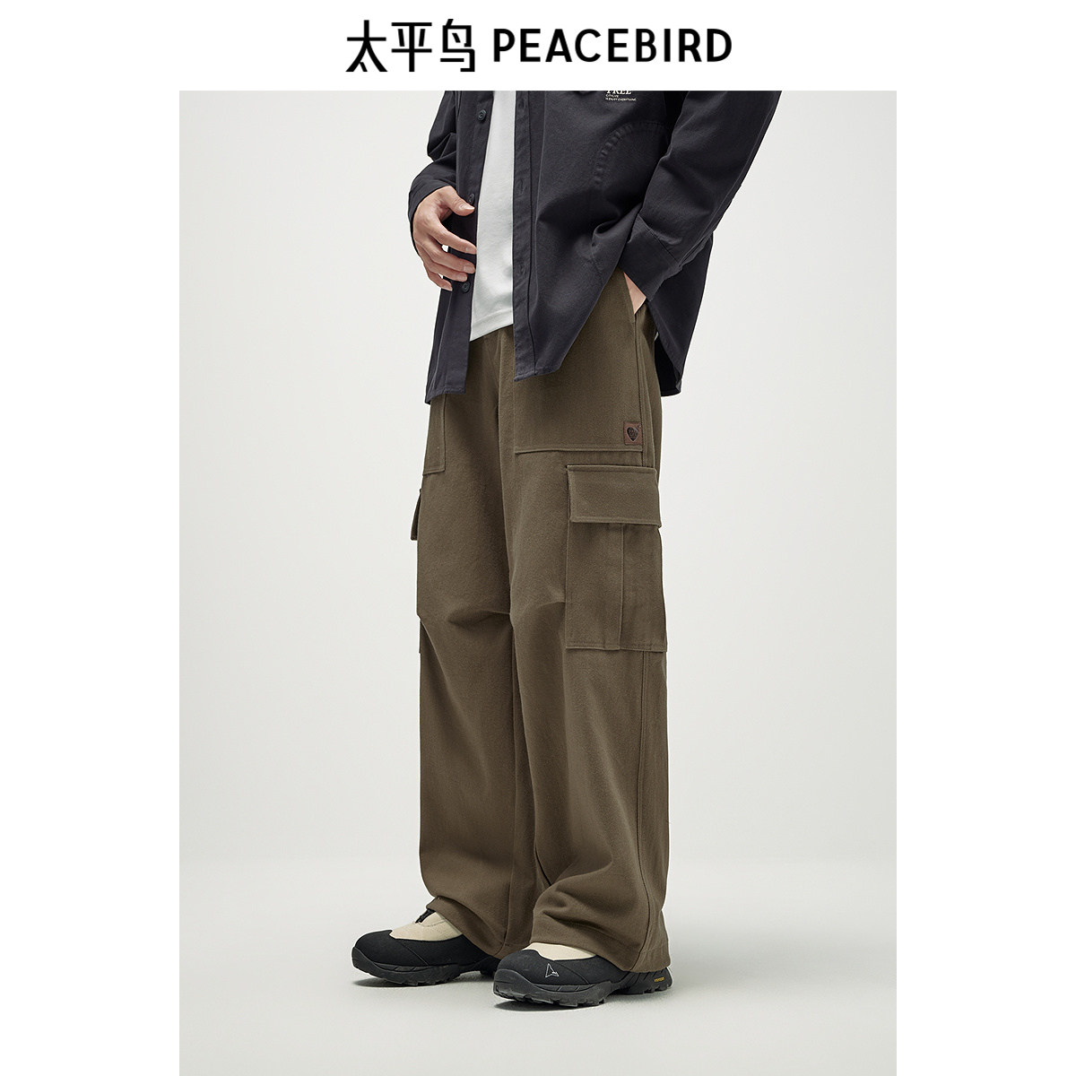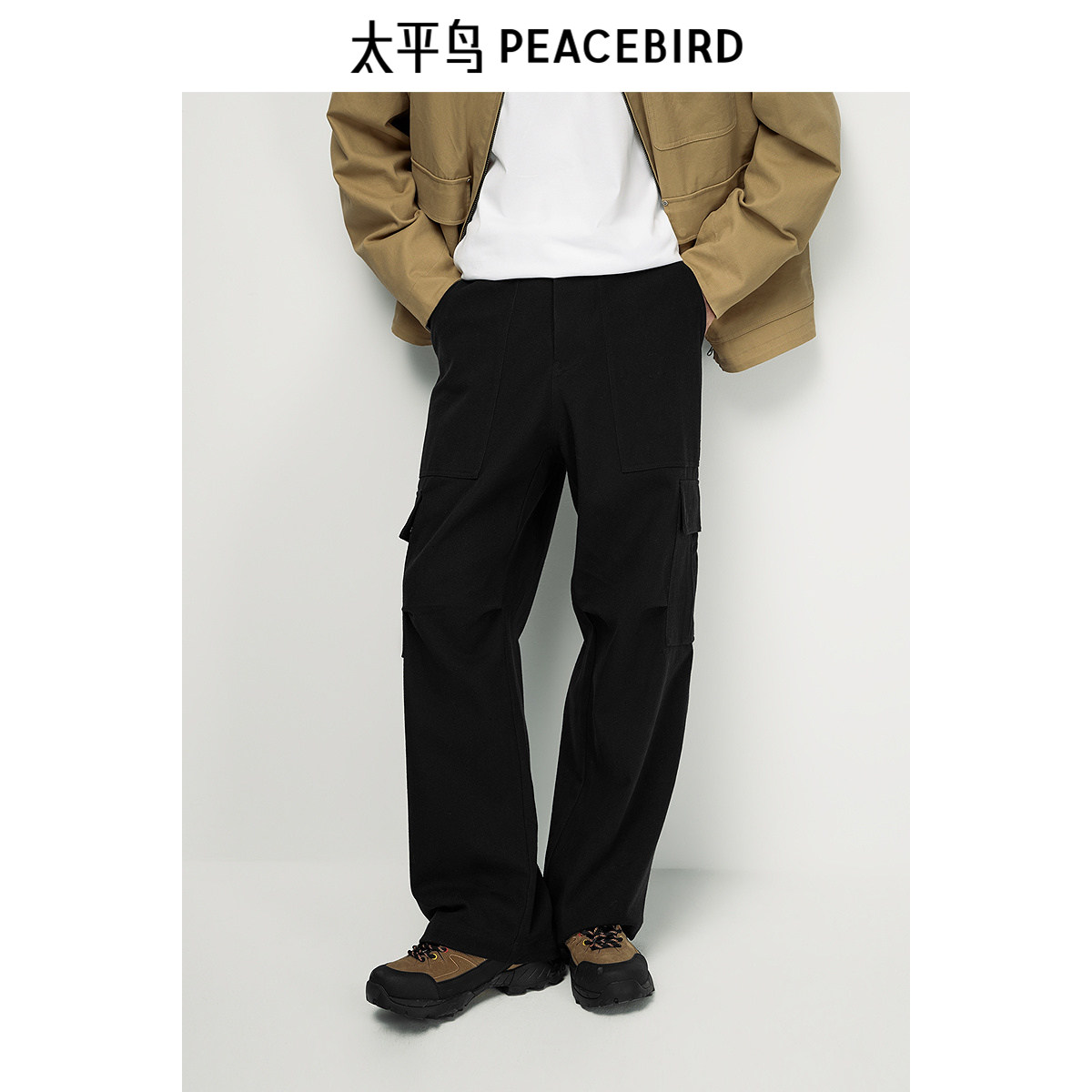 【断码钜惠】太平鸟男装休闲裤直筒工装户外伞兵裤大口袋运动裤