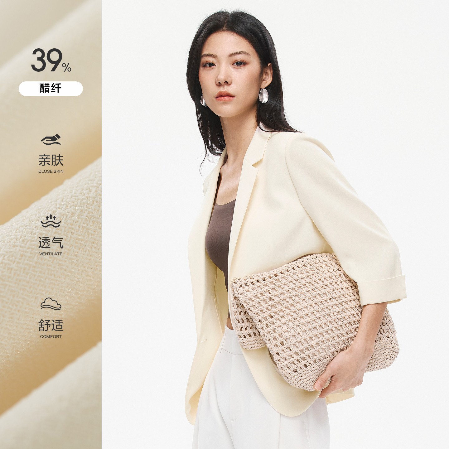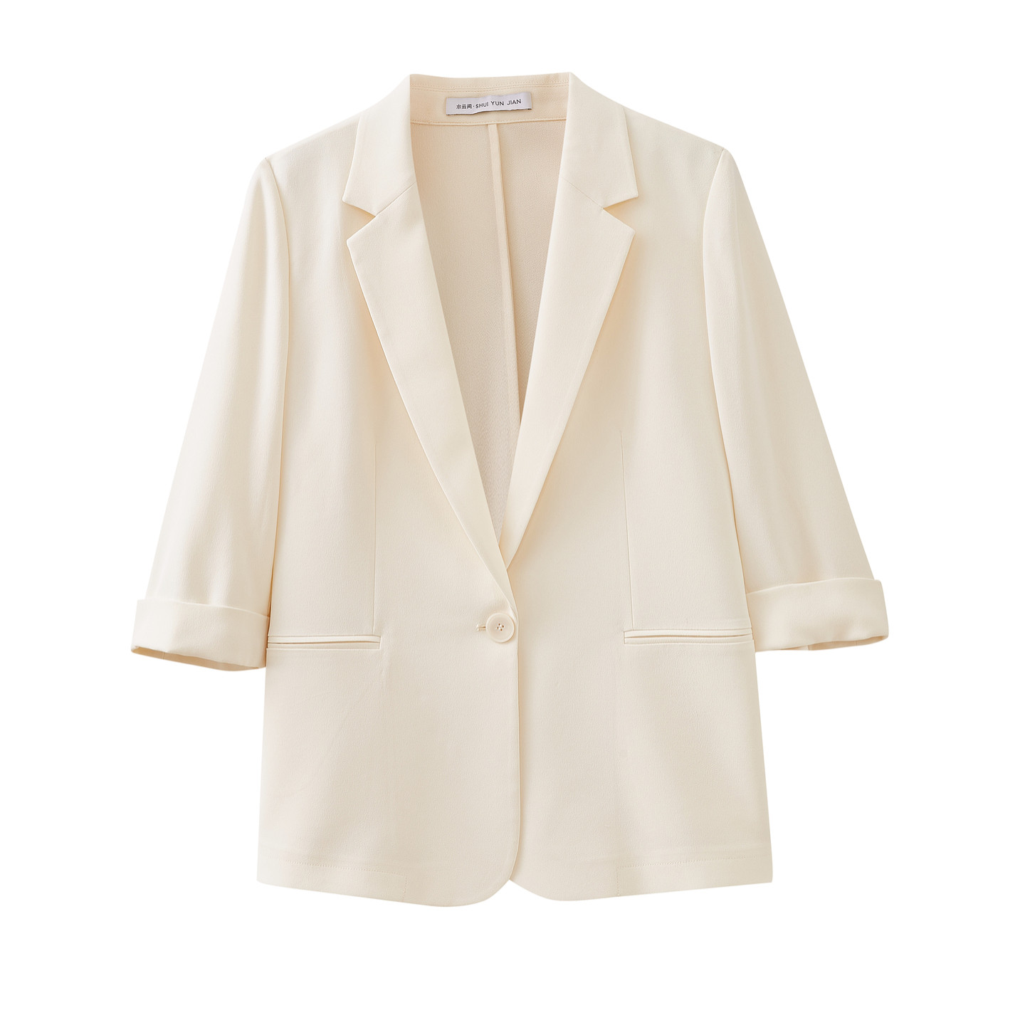 水云间极简高智感小西装外套女杏色醋纤西服七分袖上衣2026夏新款