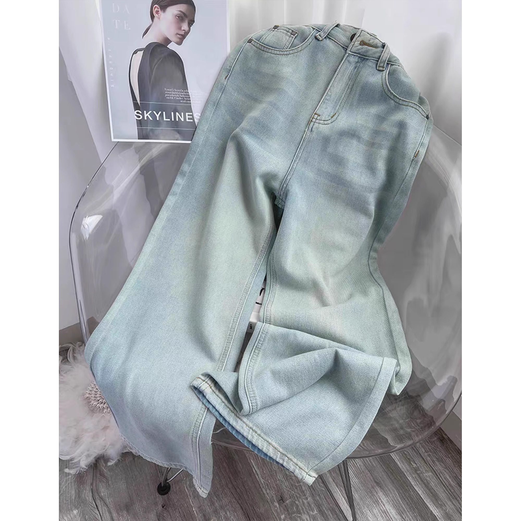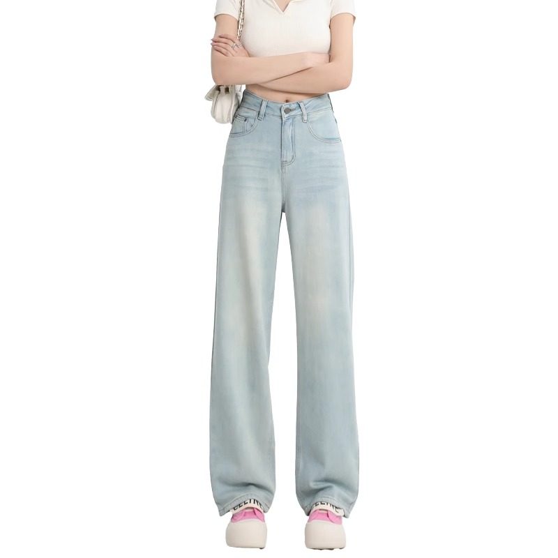 月光蓝设计感直筒牛仔裤女2024年夏季薄款透气高腰垂感窄版阔腿裤